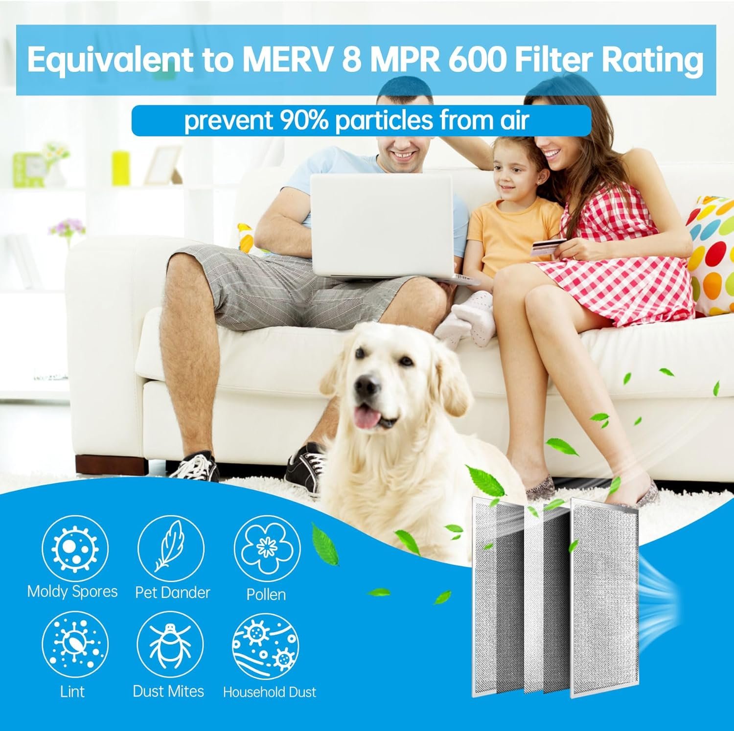[Improved Air Quality] With its pleated layers, the UBeesize air filter is more efficient at capturing particles than other filters on the market. It can absorb up to 90% of dust, pollen, pet hair, and other particles, making the air in your home cleaner and healthier to breathe. Plus, its MERV 8 level ensures that it meets industry standards for air filtration