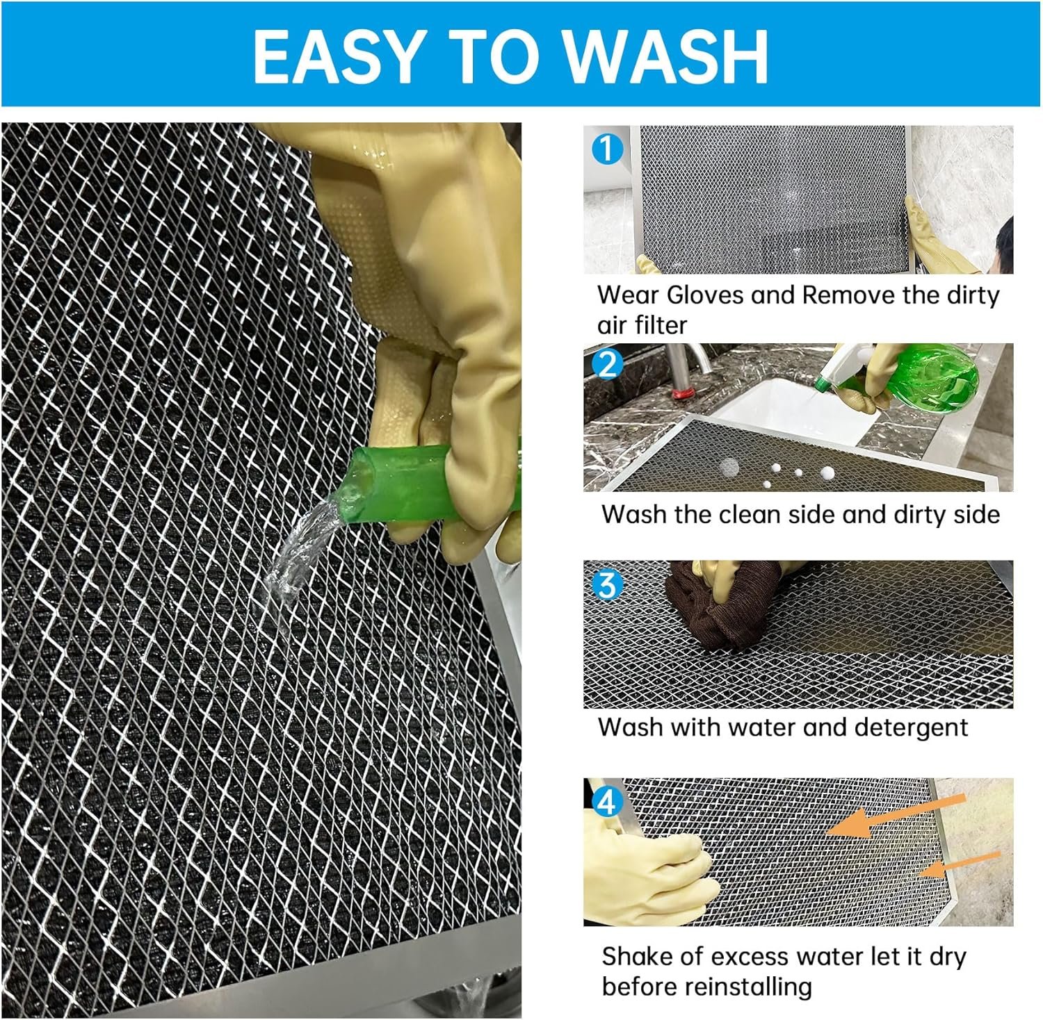 [Easy to Install and Maintain] Installing the UBeesize air filter is a breeze. Simply place it in the slot of your furnace, HVAC, or AC system. And when it’s time to clean it, just wash it with water and a little detergent. The filter dries naturally and can be re-installed. We recommend cleaning it every 3 months and using gloves (not included) to change