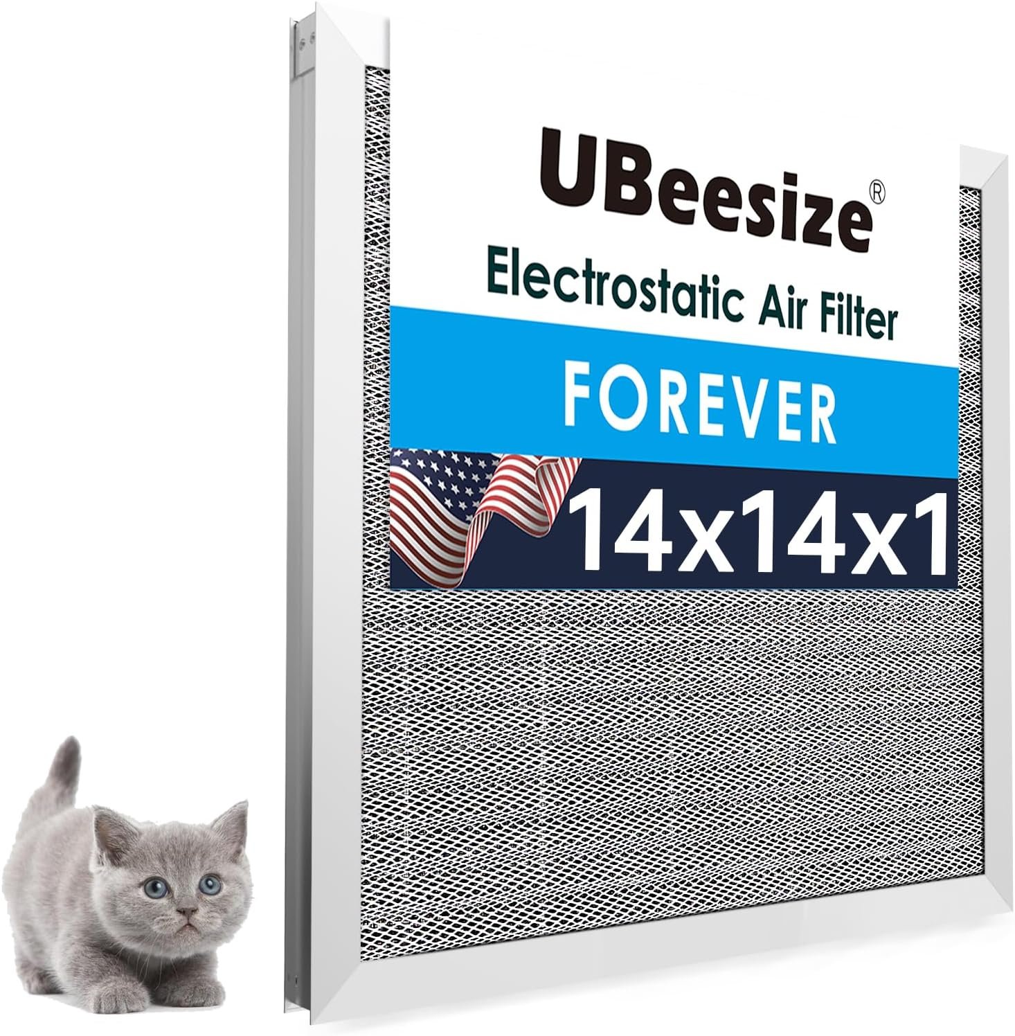 UBeesize 14x14x1 Reusable Electrostatic Air Filter HVAC AC Furnace Filter,MERV 8, Washable, Lasts a Lifetime,Permanent Air Filter,Breathe Fresher,Home And Office(Actual Size:13.5×13.5×0.82 Inch)