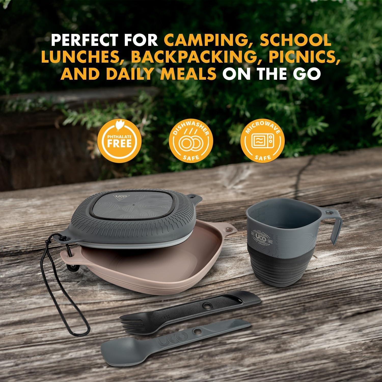 The UCO 6-Piece Camping Mess Kit measures 8 x 8 x 3 inches, weighs 0. 7 pounds, and is BPA- and phthalate-free. Dishwasher and microwave-safe. Manufacturer’s limited lifetime. Founded in Redmond, WA in 1971, UCO brings a long history of innovation and manufacturing expertise to the outdoor industry, and has become one of the leading brands in lighting and fire-starting for outdoor, home, and emergency preparedness needs. Each product is designed with thoughtful features to make time outside safer and more comfortable.