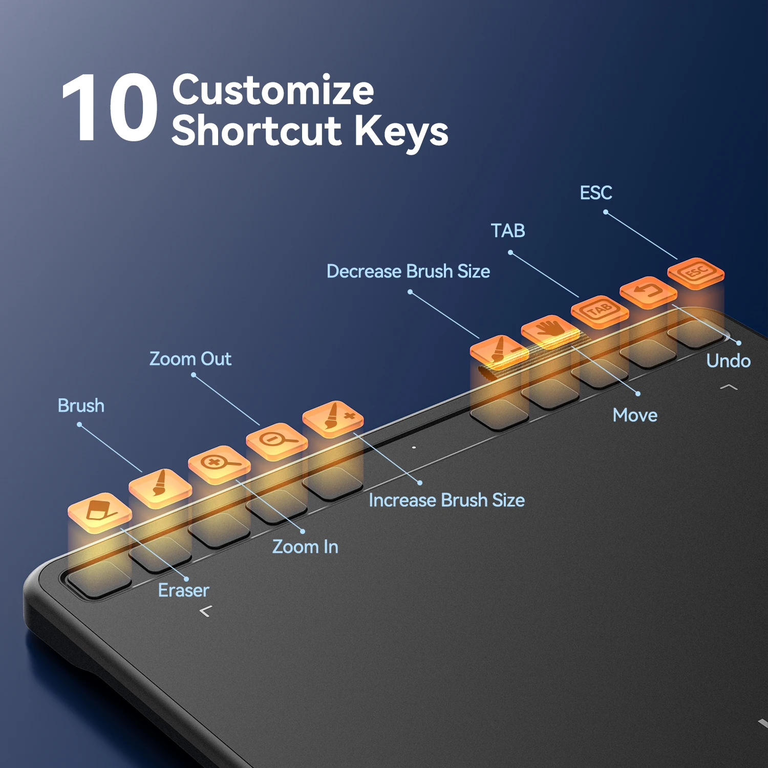 ã€10 Customizable Hotkeys】Art tablet with 10 customizable express keys for short cuts like eraser, zoom in and out, scrolling and undo, provide a lot more for convenience and helps to improve the productivity and efficiency when creating with the computer graphics tablets.