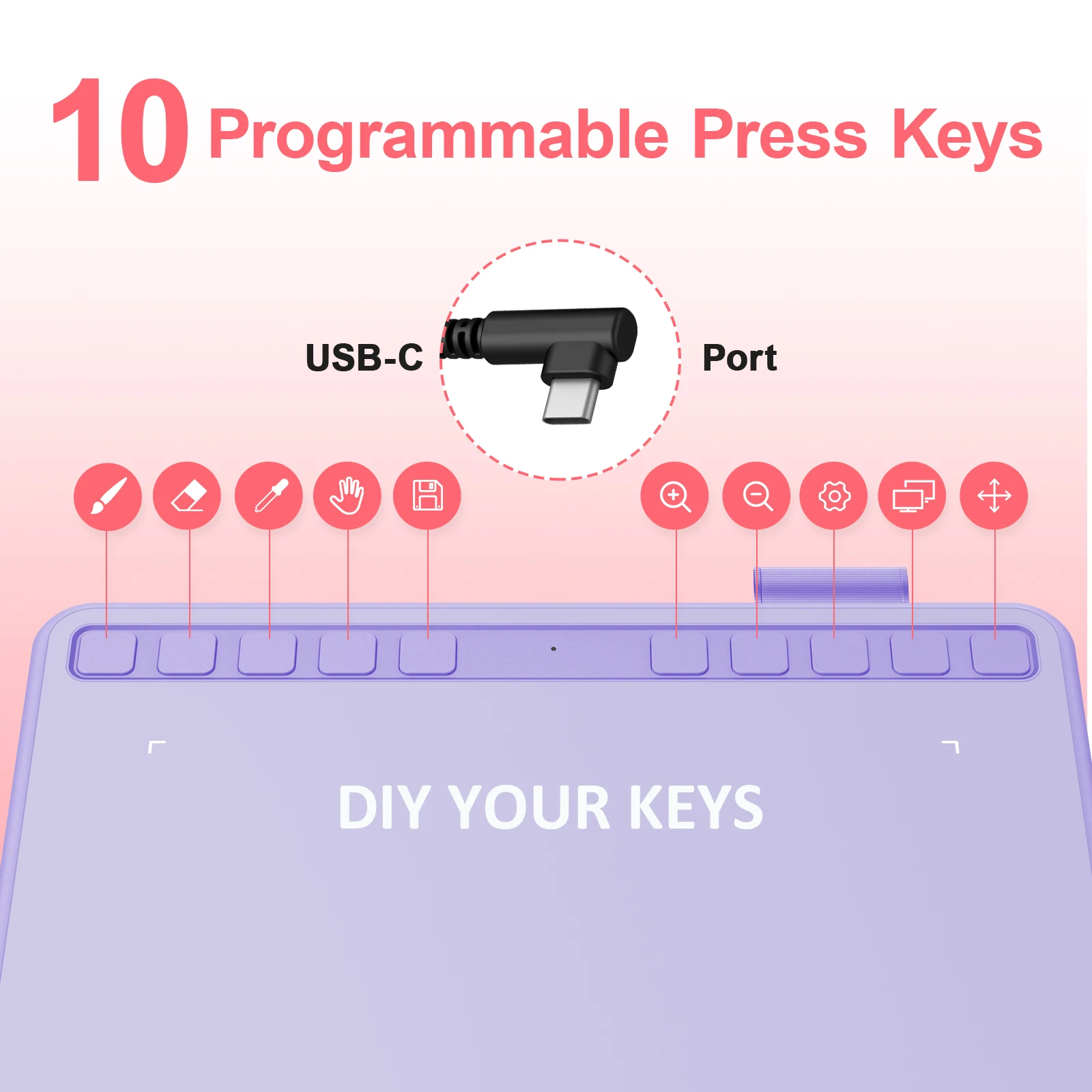 With 10 customizable shortcut keys, ugee S640 allows you to customize the drawing settings according to your using habit, which makes your creation more efficient and convenient.
