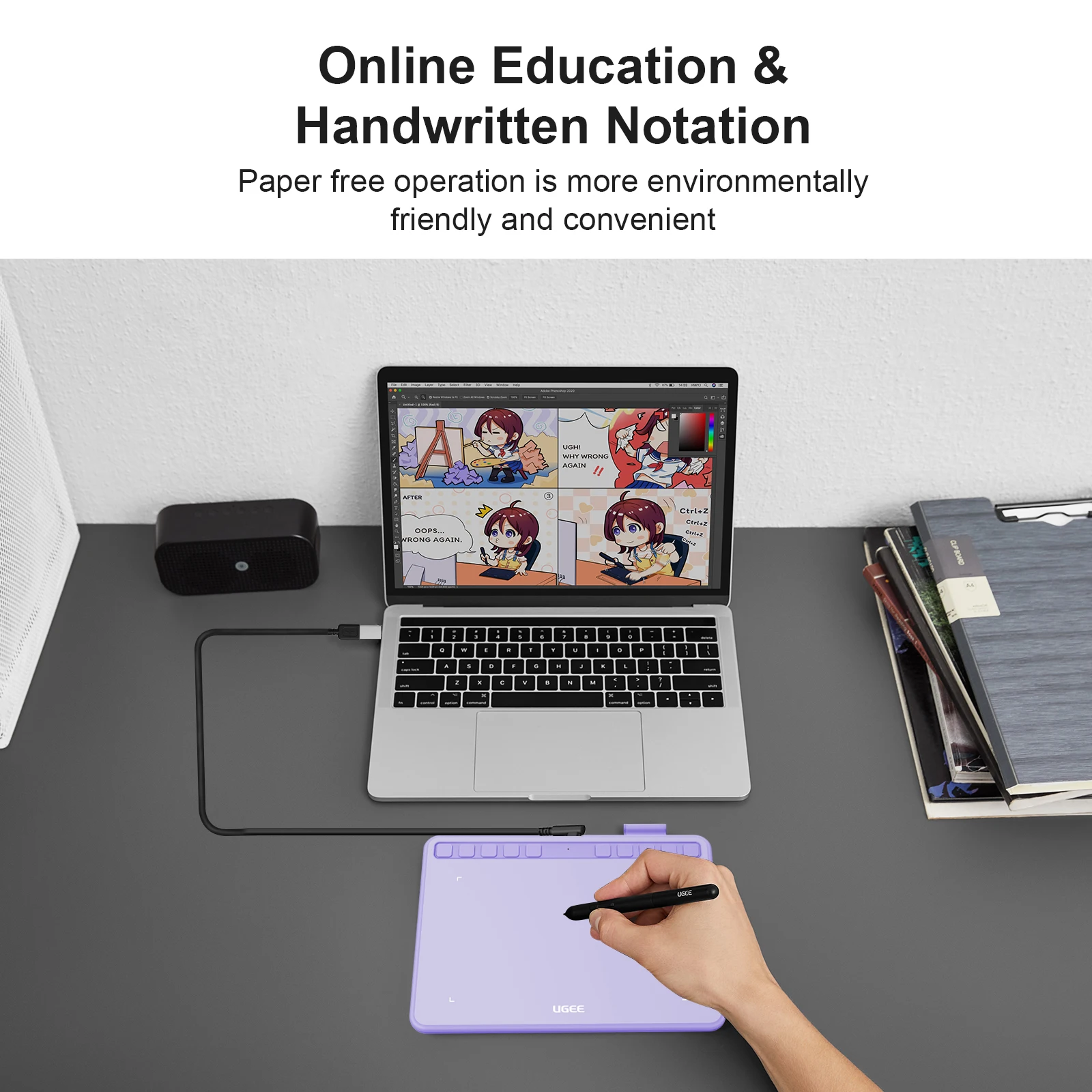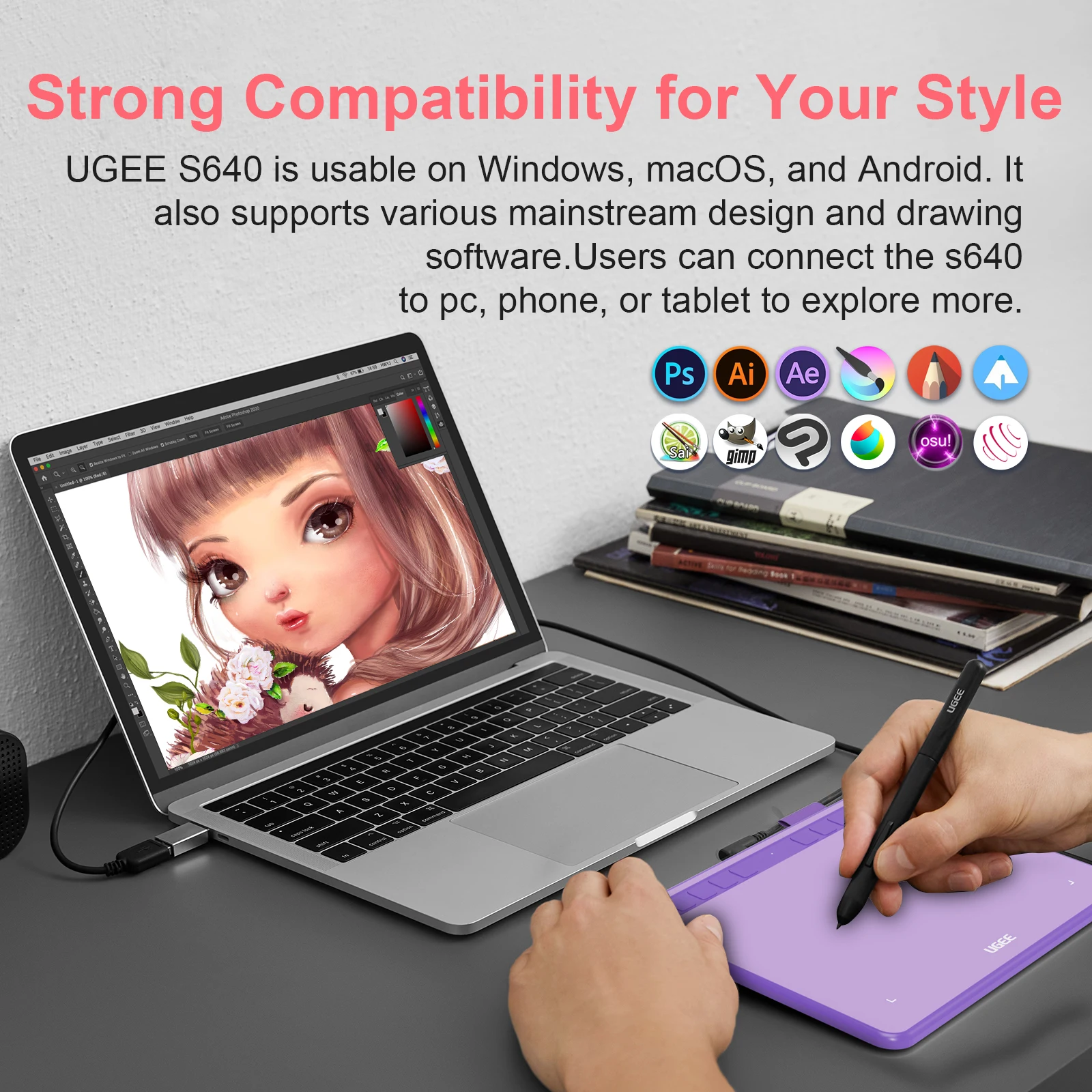 UGEE S640 Graphics Tablet 6.3×4 inches Digital Drawing Tablets with Battery-free Stylus 10 Shortcuts Support Android Windows Mac