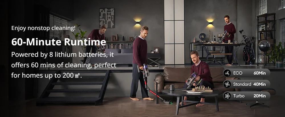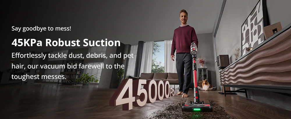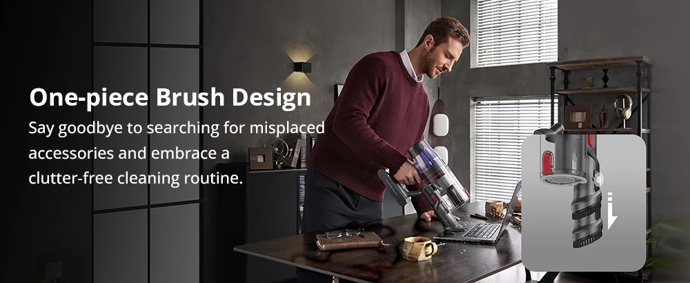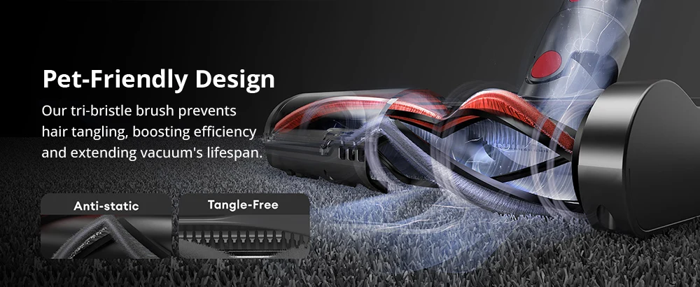 The specially designed tangle-resistant roller brush prevents hair wrap, making this wireless vacuum perfect for homes with pets and reducing maintenance time. Say goodbye to untangling hair and hello to faster, more efficient cleaning.
