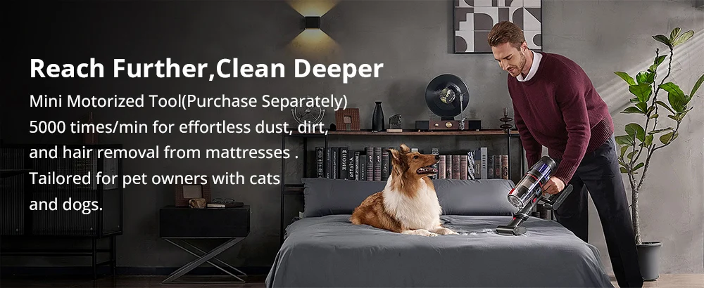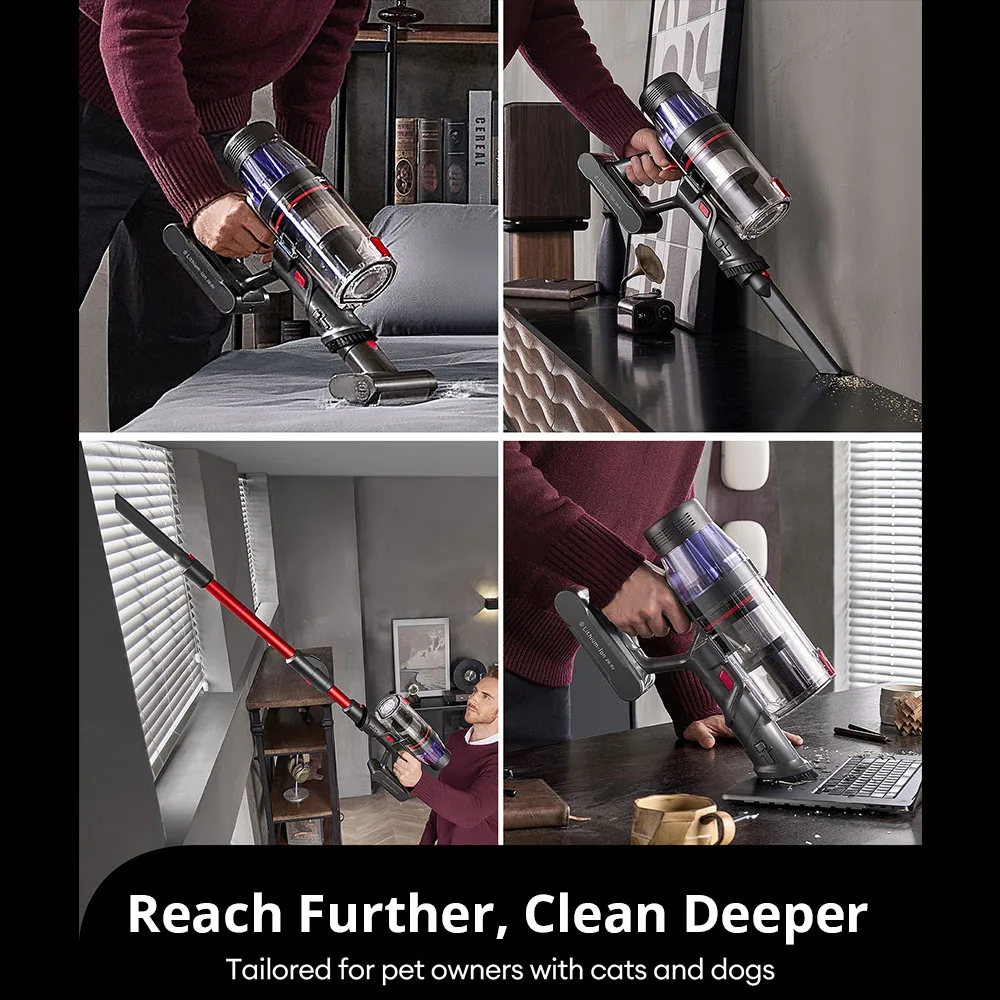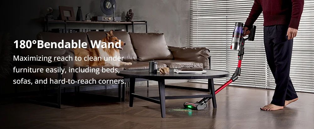 This stick vacuum cleaner adopts a foldable wand design for effortless cleaning under furniture without the need to bend. And it is equipped with multi-functional tools to provide flexible cleaning options for different areas of your home.