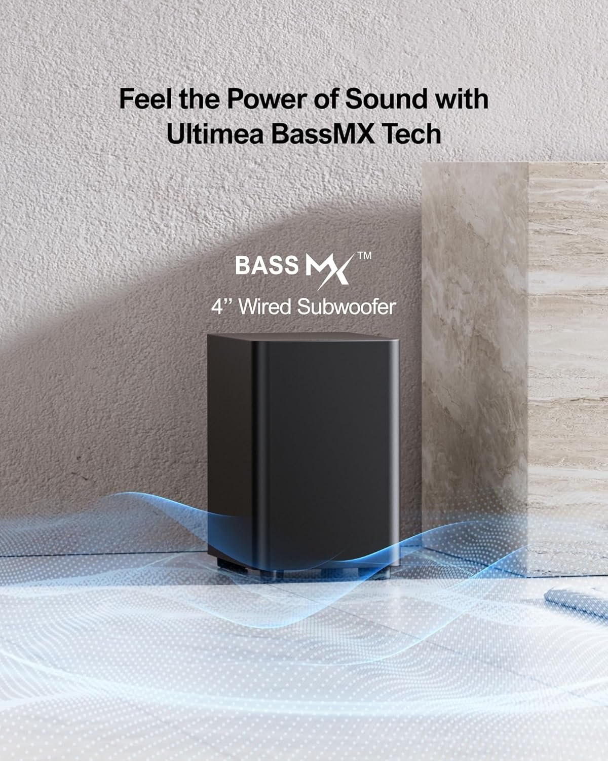4″ Wired Subwoofer with BassMX Technology: The Ultimea TV tv sound bar features a 4″ wired subwoofer with BassMX technology for enhanced low-frequency sound. Its optimized design delivers deep, resonant bass, amplifying action scenes and explosions with powerful impact.