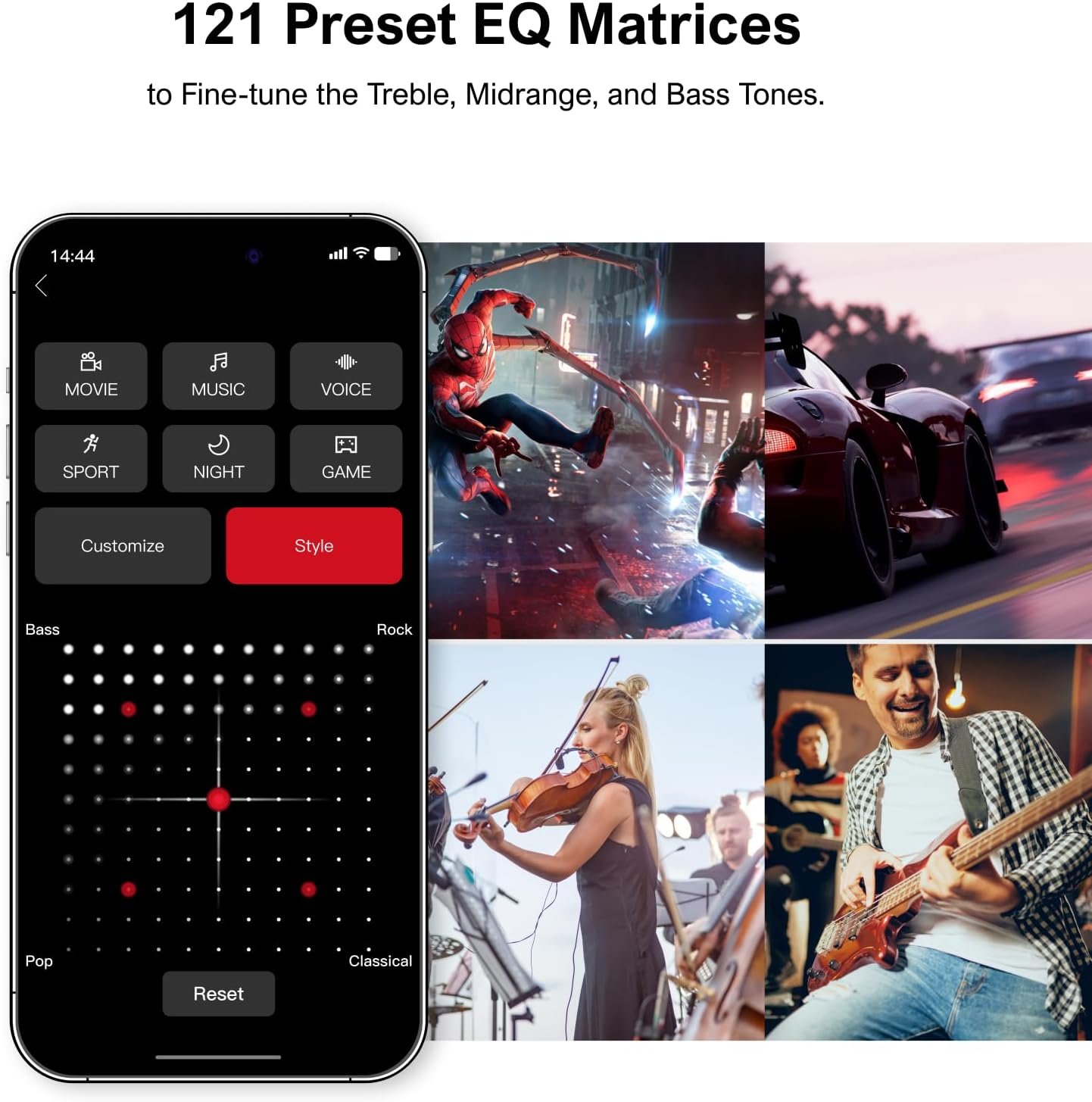 Precision Audio Tuning Redefined: Tailor your audio experience like never before with the Ultimea App. It offers 121 expert EQ presets across genres like Bass, Pop, Classical, and Rock, plus 10-band and 6 tailored EQ modes including Movie, Music, Voice, Sport, Game, and Night. With the advanced “Customize” feature, you can fine-tune your sound to match your exact preferences, ensuring every note is just the way you like it.