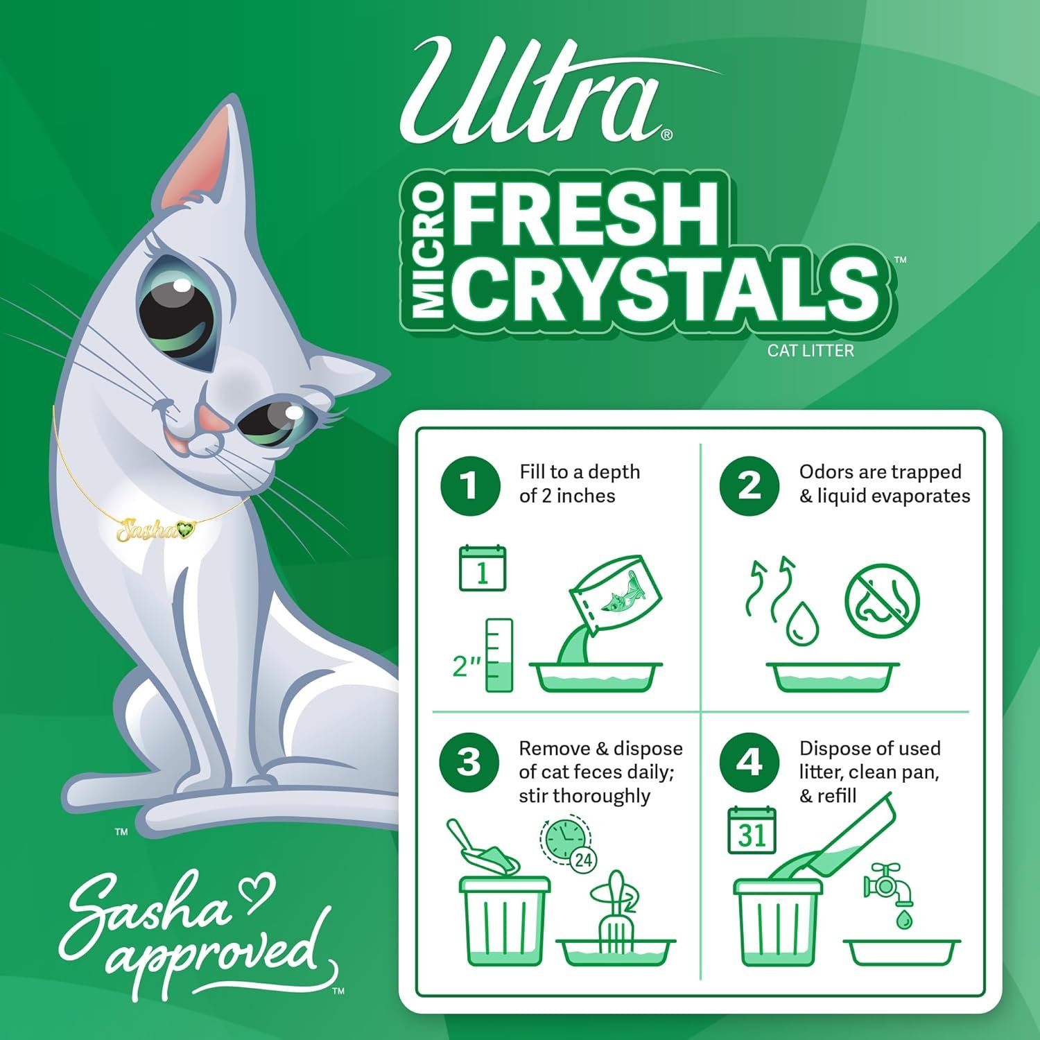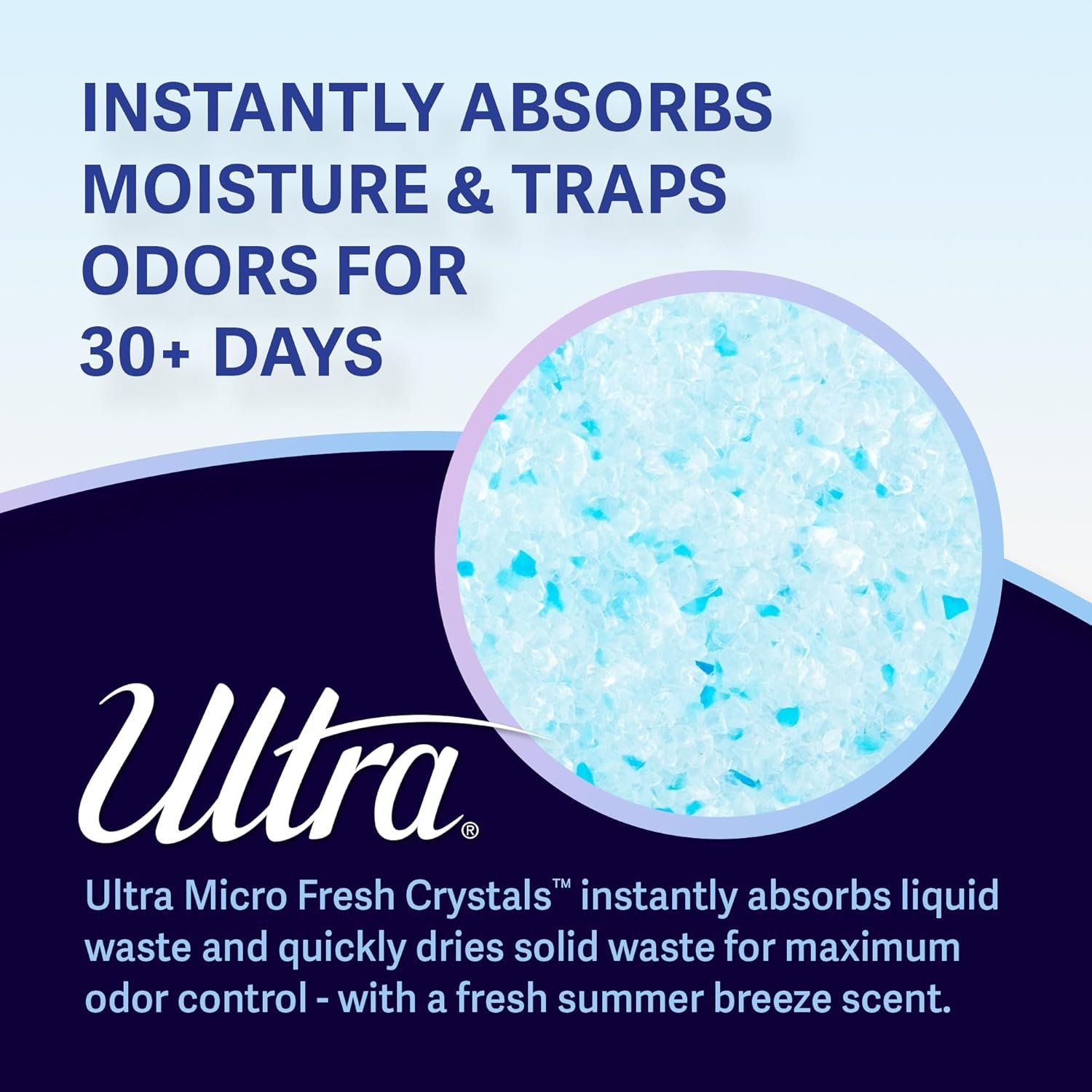 Ultra Fresh Micro Crystals Cat Litter are scented sand-sized crystals that absorb liquid waste on contact to keep your cats’ litter box free of bad odors. Soft-on-Paws crystals make it a comfort for cats’ paws and allow them to easily cover their solid waste.