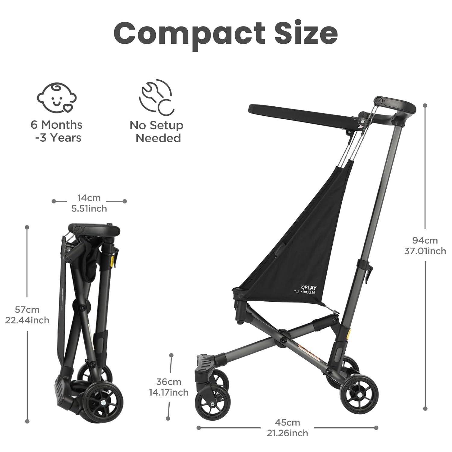 Ultra-Light & Travel-Friendly: Weighing just 7.05lbs (3.2 kg) — 30% lighter than standard strollers — the QPlay baby stroller folds into a compact 22″x16″x5.5″ size, effortlessly fitting in airplane overhead bins, luggage racks, train seats, or car trunks, making travel with your little one a breeze!