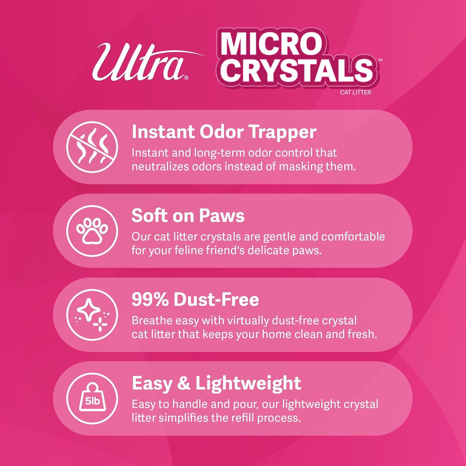 Ultra Micro Crystals Cat Litter – 99.9% Dust Free, Soft on Paws, Fragrance Free – 5 Lbs.