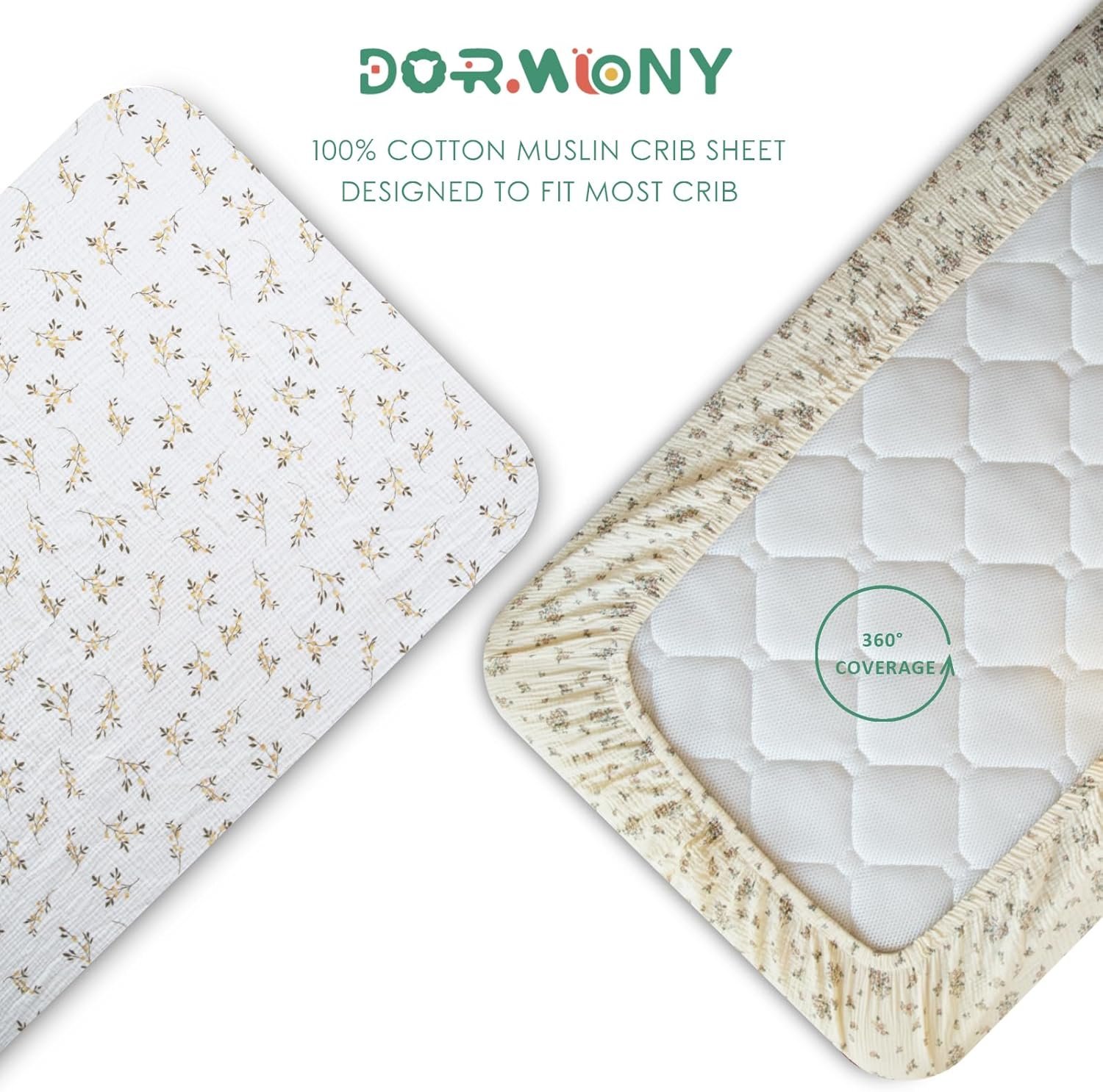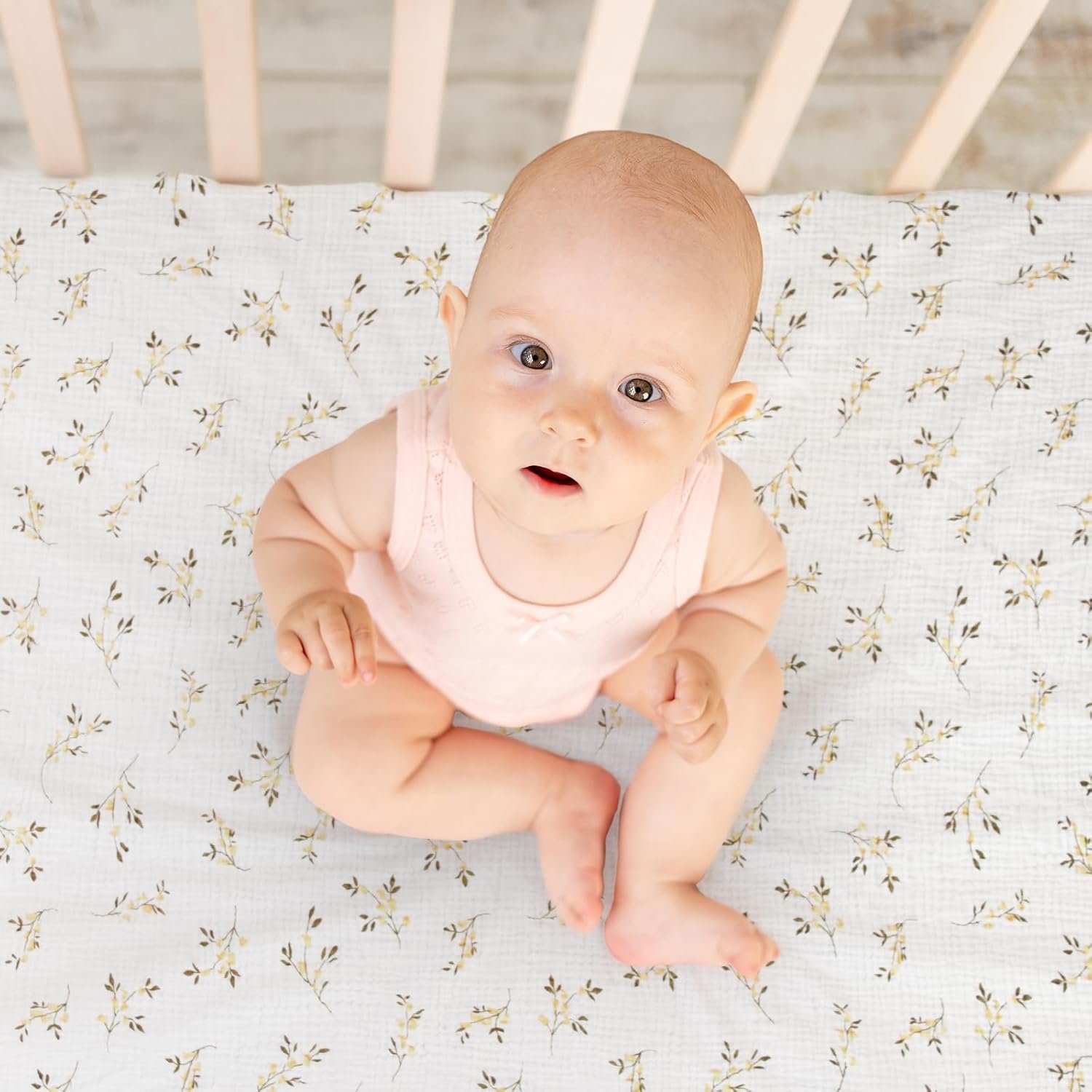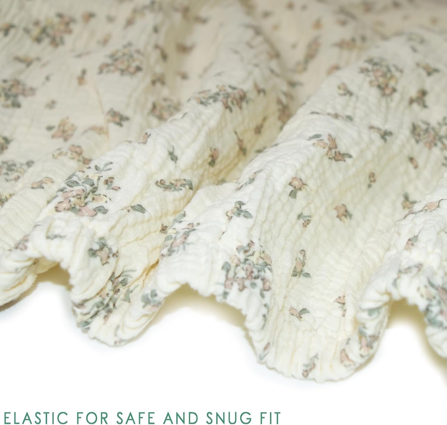 Ultra Soft Muslin Crib Sheets for Baby, Premium Breathable Organic Cotton Crib Fitted Sheet for 52’’x28’’Standard Crib and Toddler Mattress.2 Pack Flower Pattern