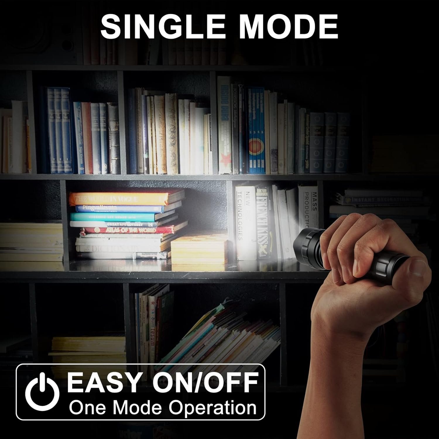 【Sturdy & IPX-65 Water Resistant】Made of aerospace grade aluminum alloy, anti-pressure and anti-fall, wear-resistant anodizing. Mini flashlight is IPX-65 waterproof and can withstand most extreme weather such as storms and heavy rain.