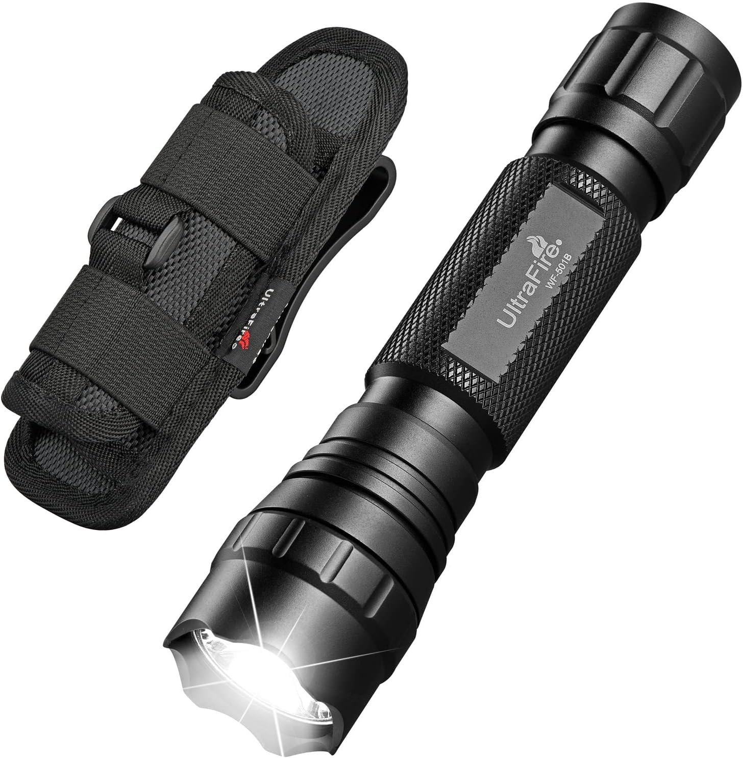 【Super Bright & Long-Lasting】UltraFire WF-501B tactical flashlight with high output of up 1000 Lumen, the maximum beam length is nearly 920ft (280 meters). Especially suitable for hiking, camping, fishing, running, power outages, emergency situations.