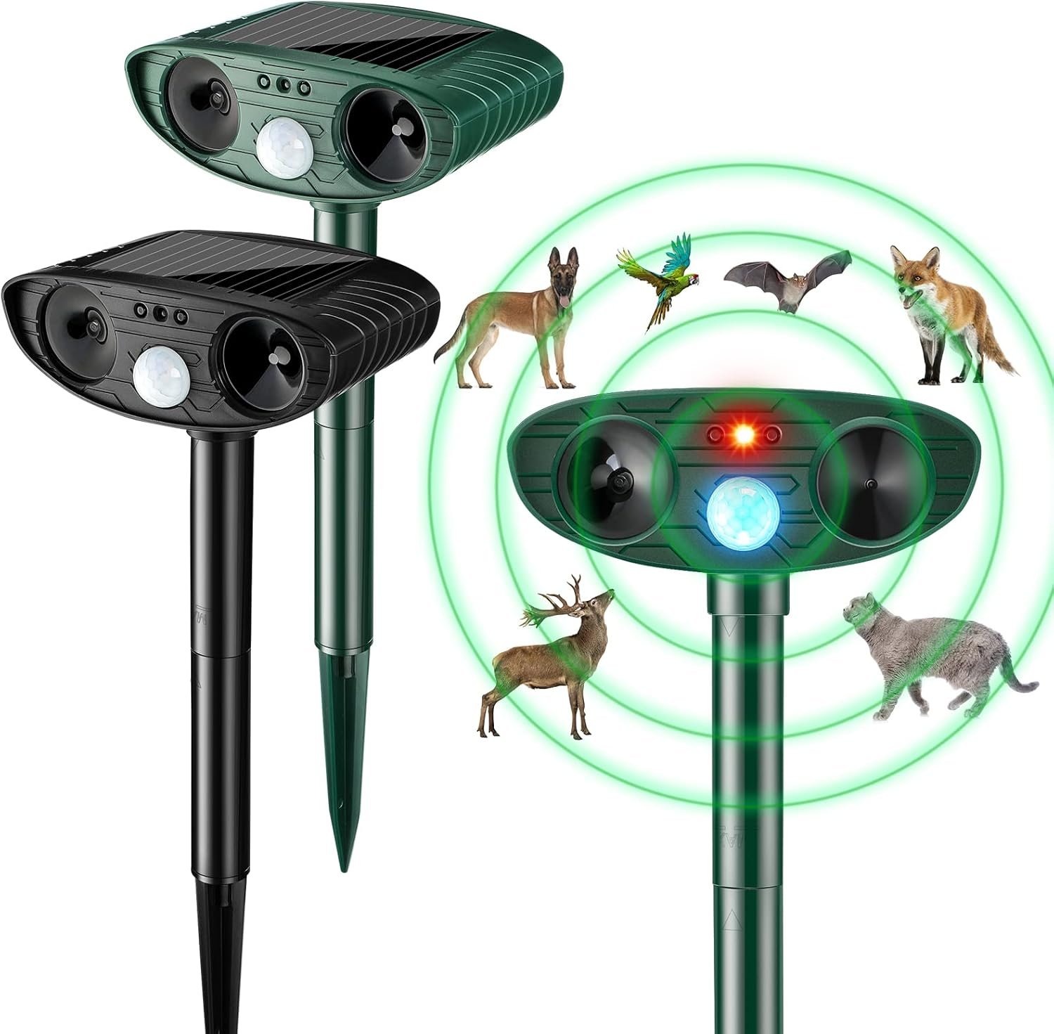 Ultrasonic Animal Repellent Outdoor Solar Powered Repeller Cat Dog Deer Deterrent Waterproof Motion Sensor Deterrent for Yard Garden Rabbit Squirrels Fox Pest(Black, Green,2 Pieces)