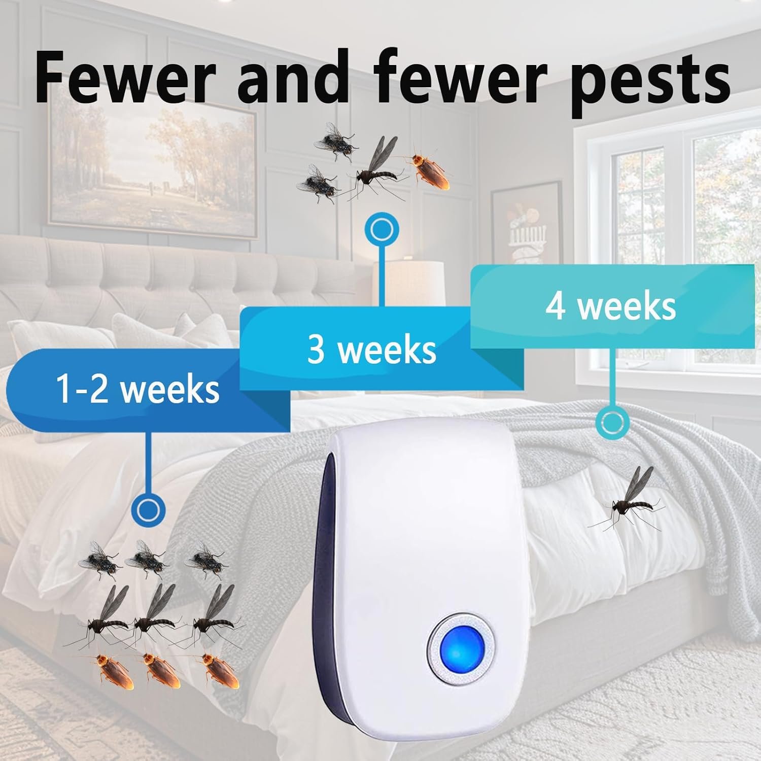 Effective for Most Pests: Install one pest ultrasonic repellent throughout each room for full coverage, repelling rodents, rats, bugs, spiders, cockroaches, ants, insects, and more.