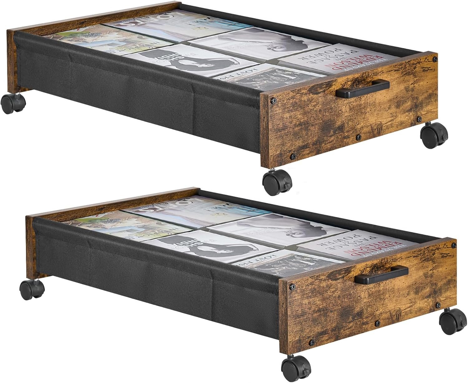 Under Bed Storage with Wheels: Engineered with metal frame, industrial style wood panels, beautiful appearance, offering 3X the durability of fabric organizers. Built to hold heavy blankets, books, or seasonal wardrobes without sagging
