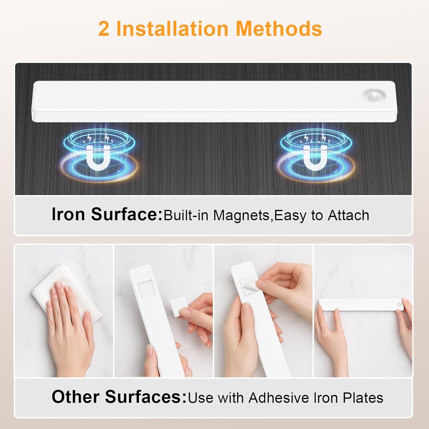 Under Cabinet Lighting, Motion Sensor Light Indoor, USB Rechargeable Battery Operated with Magnetic Closet, Kitchen, Counter, Motion-Activated Auto Shut-Off, Eye-Care Gradual Brightness (2-Pack)