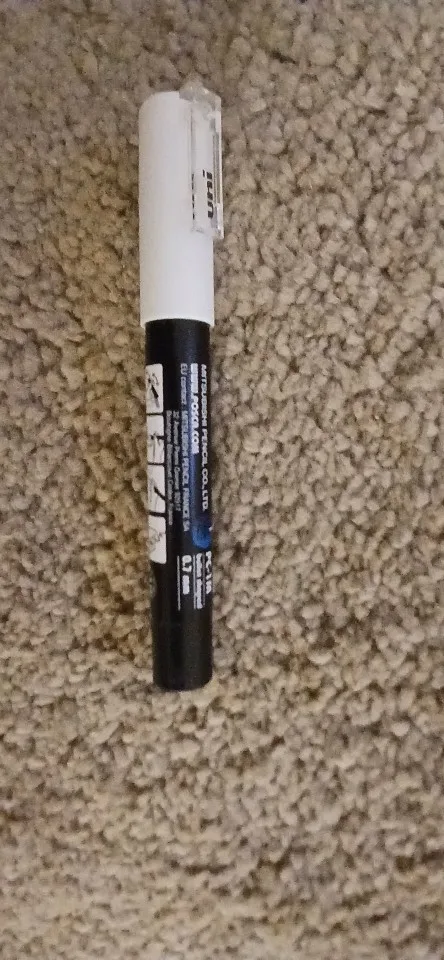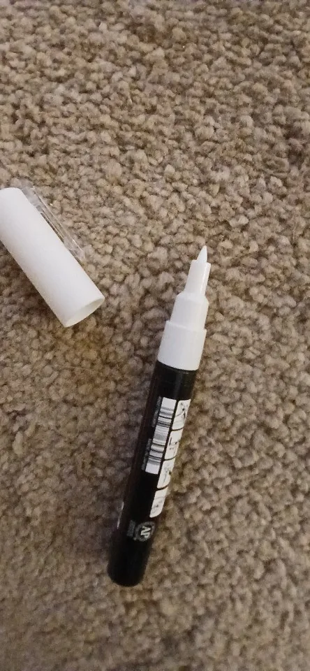A very well-covering white marker with a fine tip.