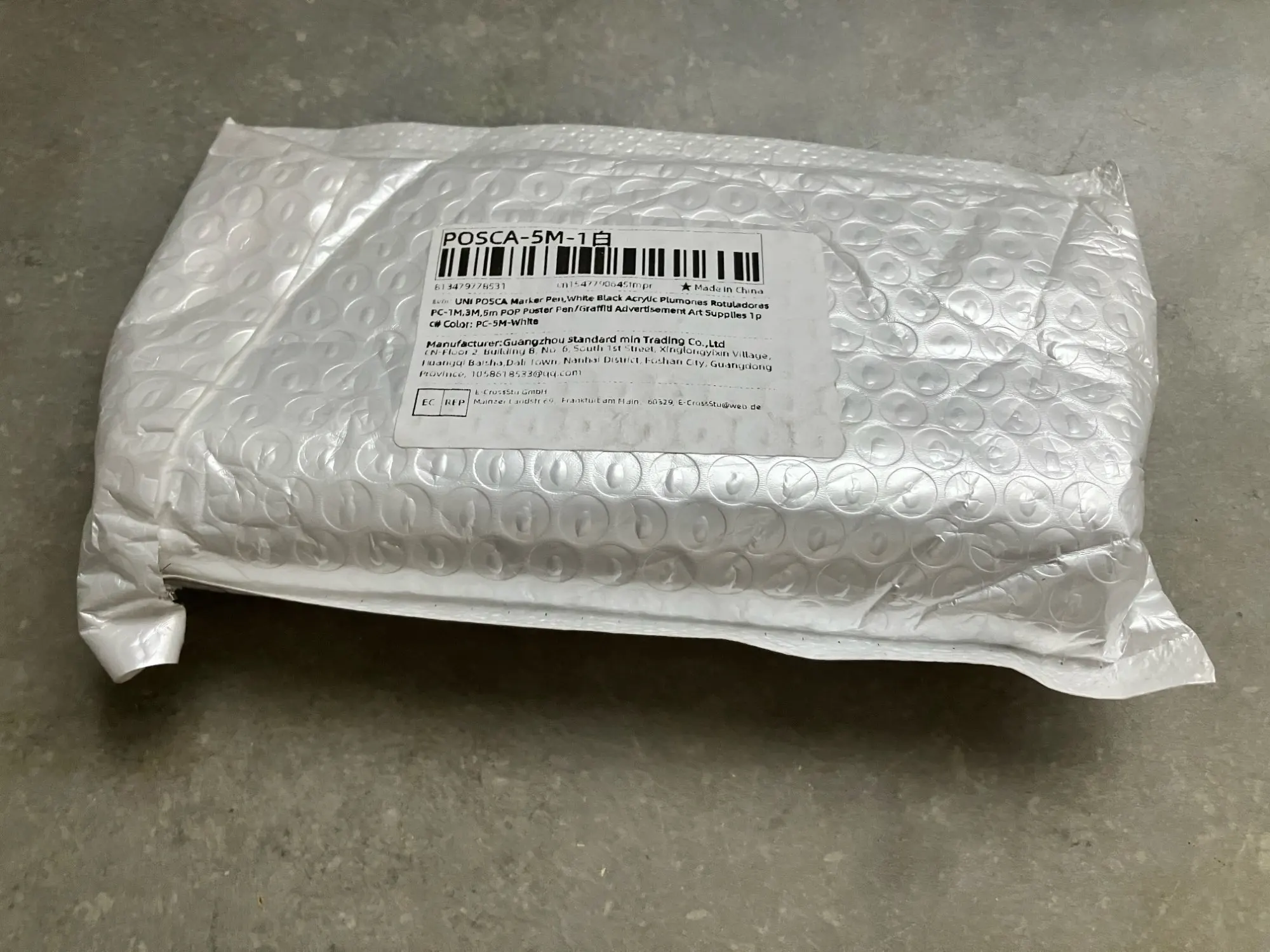 The marker comes wrapped.Before first use, you need to shake and activate the cartridge by pressing.Precision tip, well pigmented.