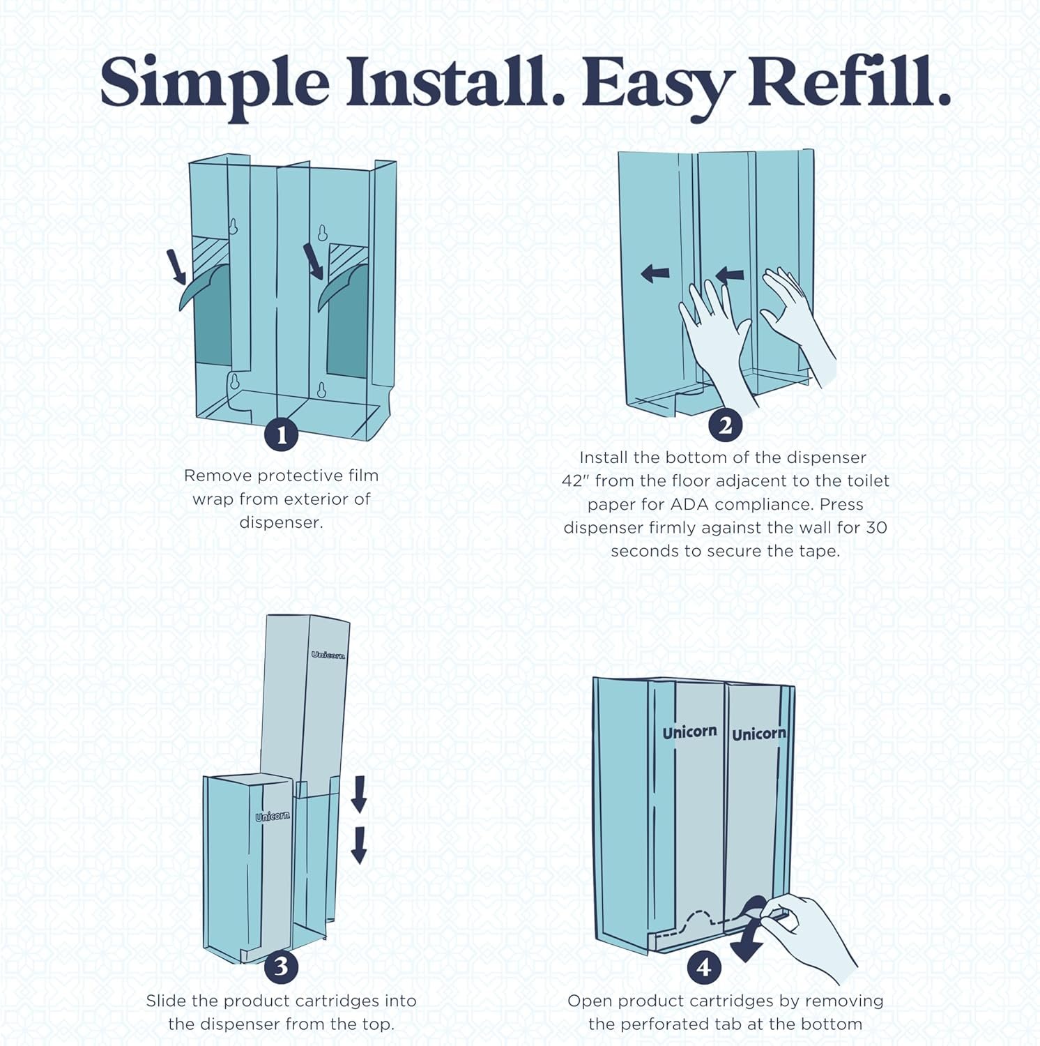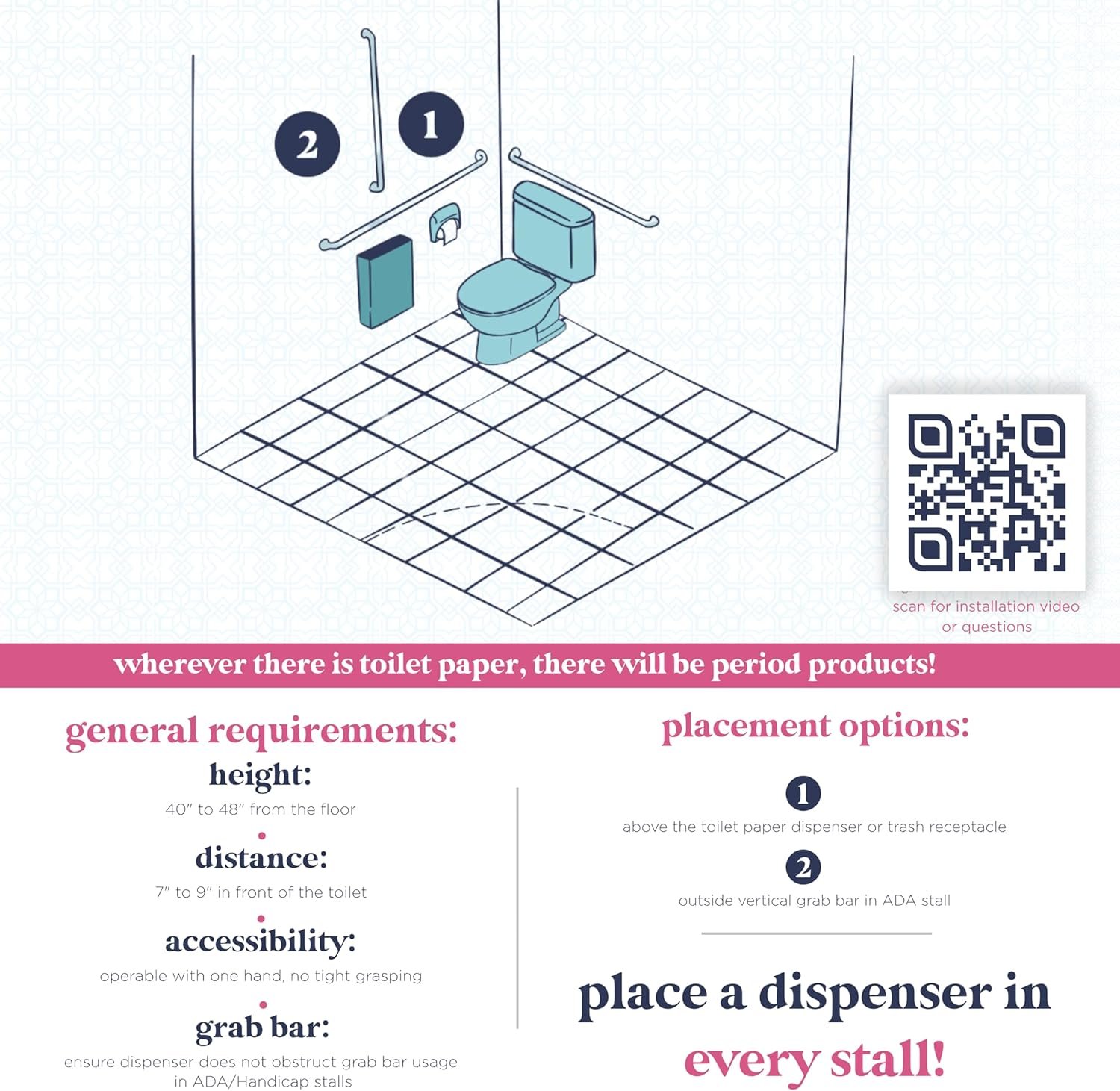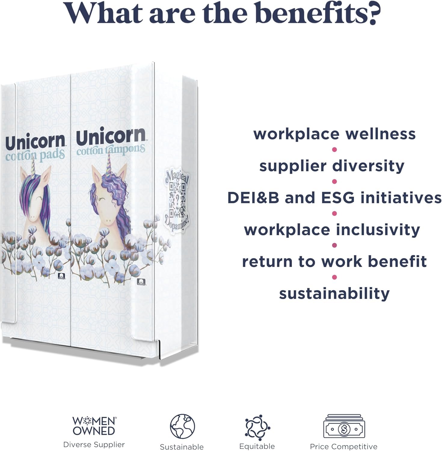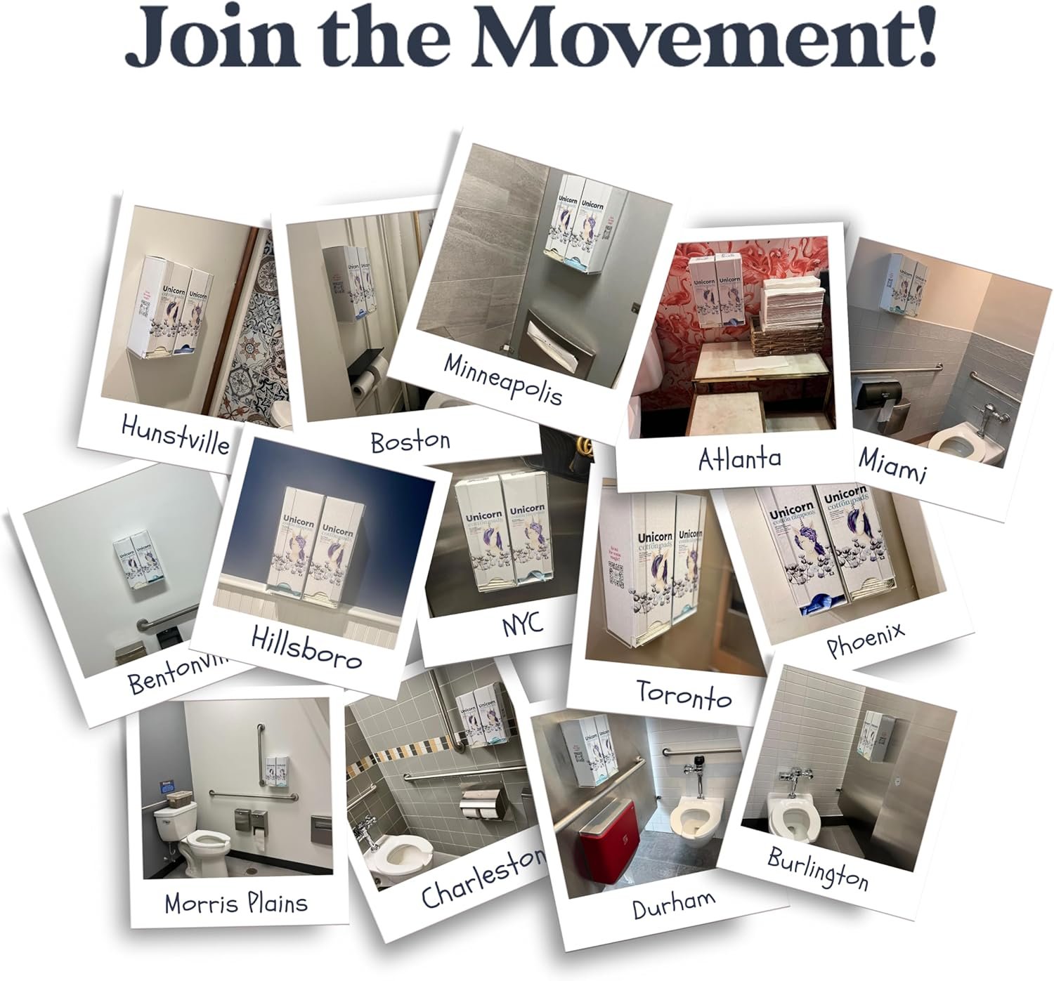 UNIQUELY DESIGNED FOR EVERY STALL – Proudly made in the USA with a modern, acrylic design. Our low-cost, low-profile dispenser is made to be placed in every stall and installs in just 30 seconds; no tools are required! By placing dispensers in every stall, UNICORN actively combats the subtle stigmatization associated with period products, promoting inclusivity and dignity. Every employee, regardless of their role or seniority, is guaranteed access to essential products, reflecting a deep-rooted commitment to equality and care.