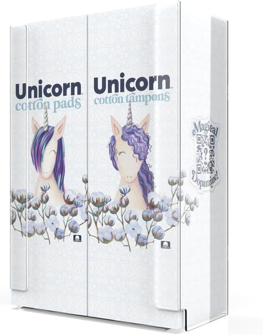 UNICORN Acrylic Wall Mounted Bathroom Dispenser Starter Kit Including One Cartridge 60 Count Organic Cotton Tampons & One Cartridge 40 Count Organic Cotton Pads