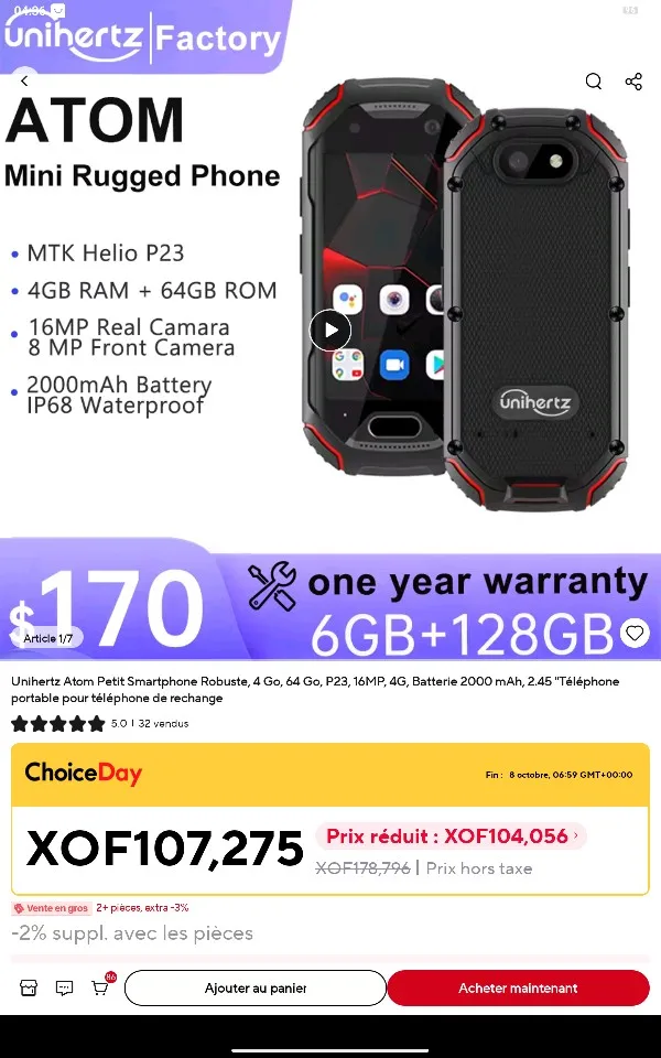 7 reviews for Unihertz Atom Small Rugged Smartphone, 4GB, 64GB Cellphone, P23, 16MP, 4G, 2000mAh Battery, 2.45 “Mobile Phone for Spare Phone