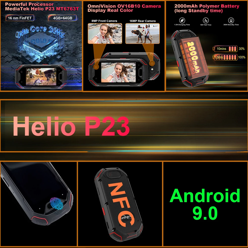 Unihertz Atom Small Rugged Smartphone, 4GB, 64GB Cellphone, P23, 16MP, 4G, 2000mAh Battery, 2.45 “Mobile Phone for Spare Phone