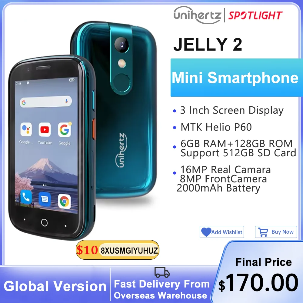 Unihertz Jelly 2 Mini Smartphone 6GB 128GB Android 11 Helio P60 Octa Core Unlocked NFC Cellphone 16MP Infrared Phone
