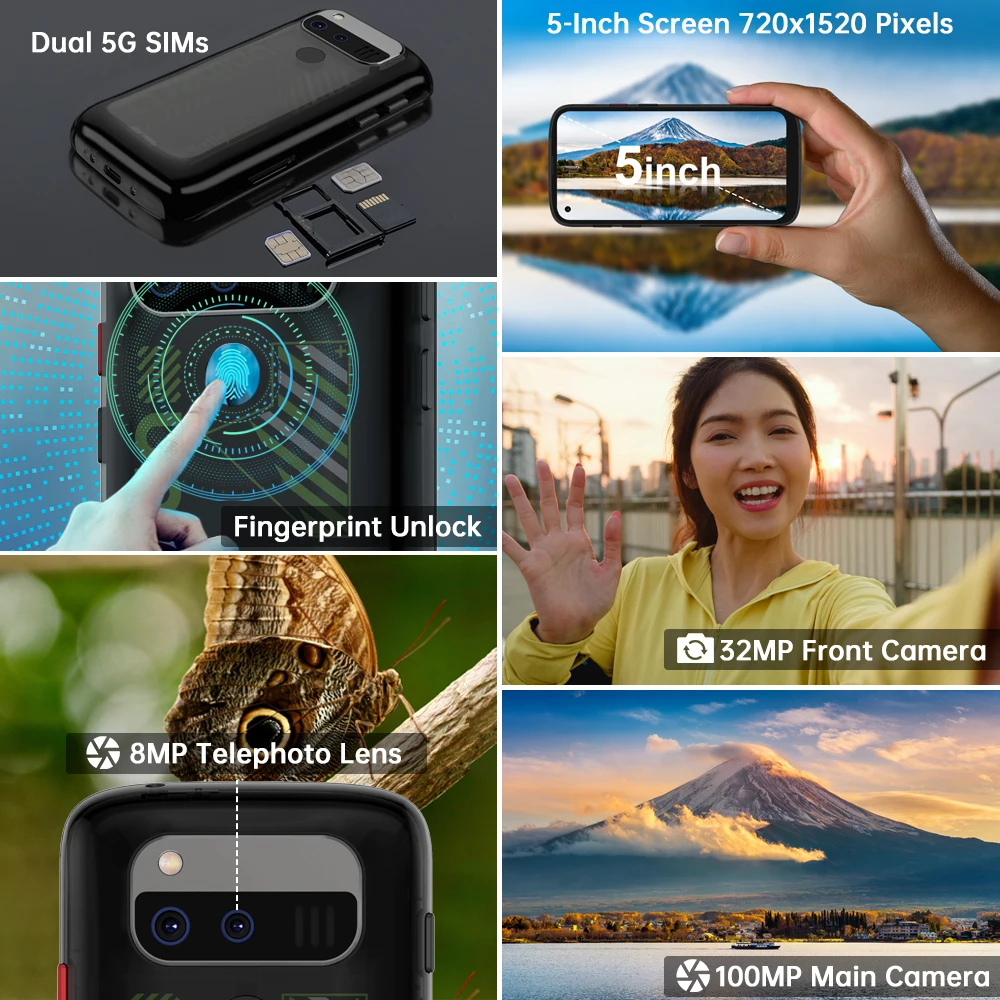 Unihertz Jelly Max 5G Mini Smartphone Android 14 Dimensity 7300 CPU 12GB 256GB 100MP Camera 4000 mAh Battery 5.05″ inch Screen