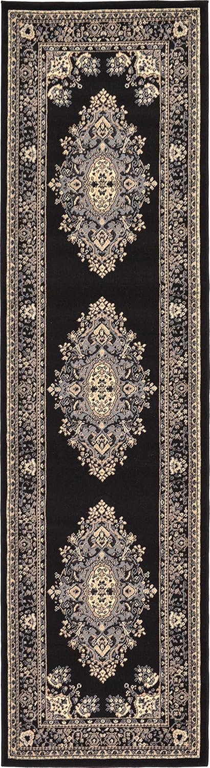Unique Loom Reza Collection Traditional Persian Style Area Rug, 2 ft 7 in x 10 ft, Black/Beige