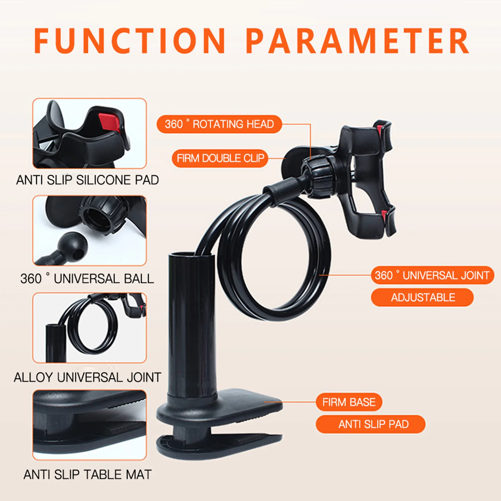 1 review for Universal 360° Flexible Cell Phone Holder Arbitrarily Curved Clamp on Desk Mobile Phone Stand for Desk Clip Bracket Clamp Stand