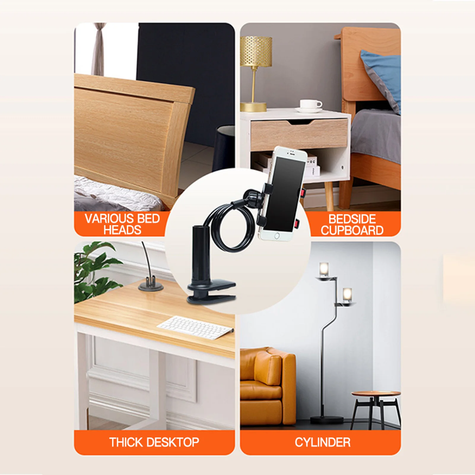Universal 360° Flexible Cell Phone Holder Arbitrarily Curved Clamp on Desk Mobile Phone Stand for Desk Clip Bracket Clamp Stand