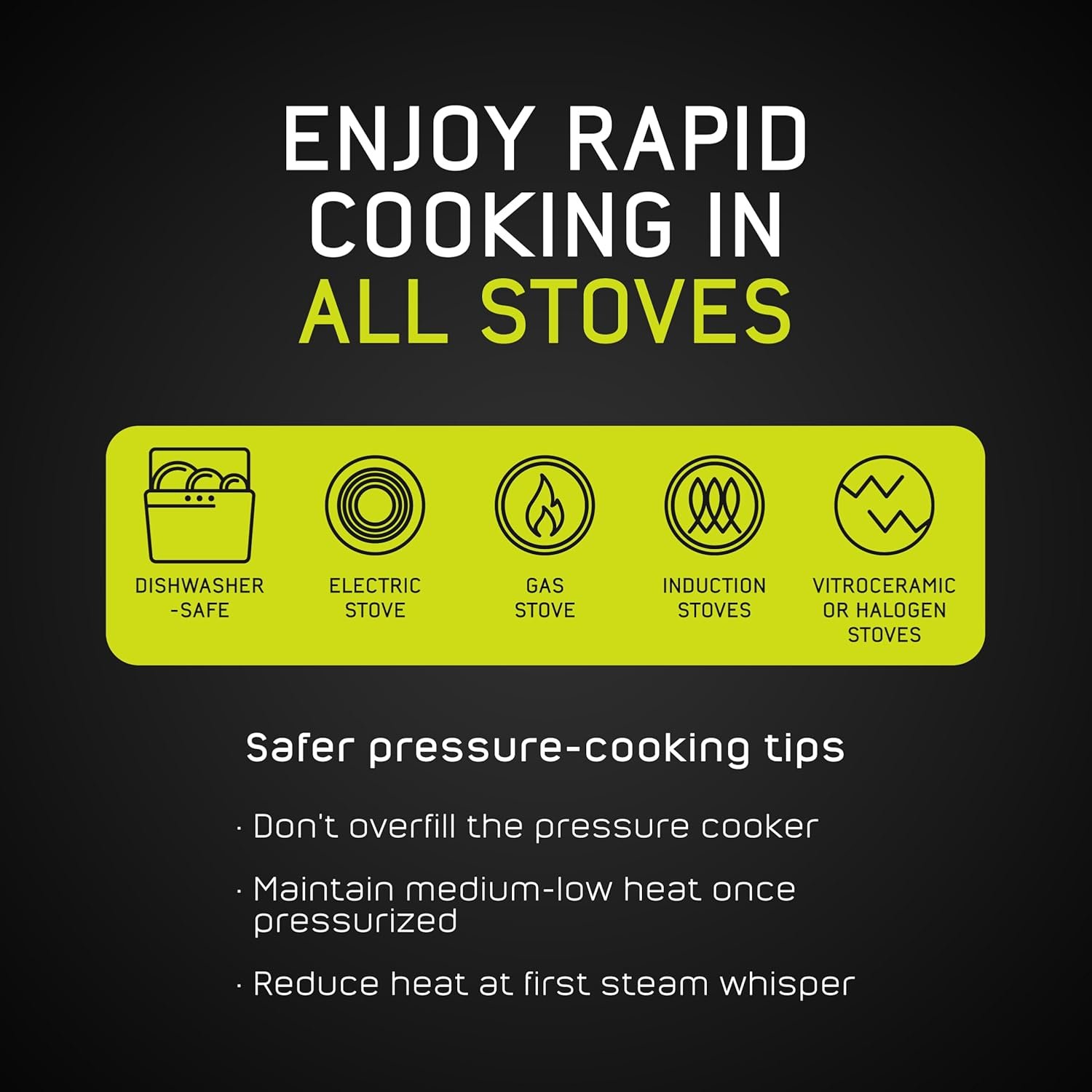 🔥 Compatible with All Stovetops & Easy to Clean – Whether you’re using gas, electric, glass ceramic, or induction cooktops, this pressure cooker delivers professional-grade cooking results. Plus, it’s dishwasher-safe (excluding the pressure lid), making cleanup effortless after every use.