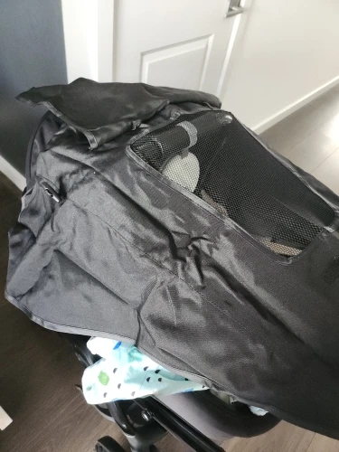 Useful product. the sides are a bit off and there’s no way to secure them so they don’t flutter in the wind, but overall the cover does its job. An additional plus (besides the obviously attractive price) for the flap that allows previewing the baby from the front. I recommend this product.
