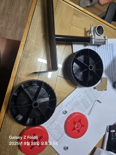 The box arrived completely broken. Fortunately, there were no broken items or missing parts in the contents. It consists of a steel frame with two wheels and fixing screws.