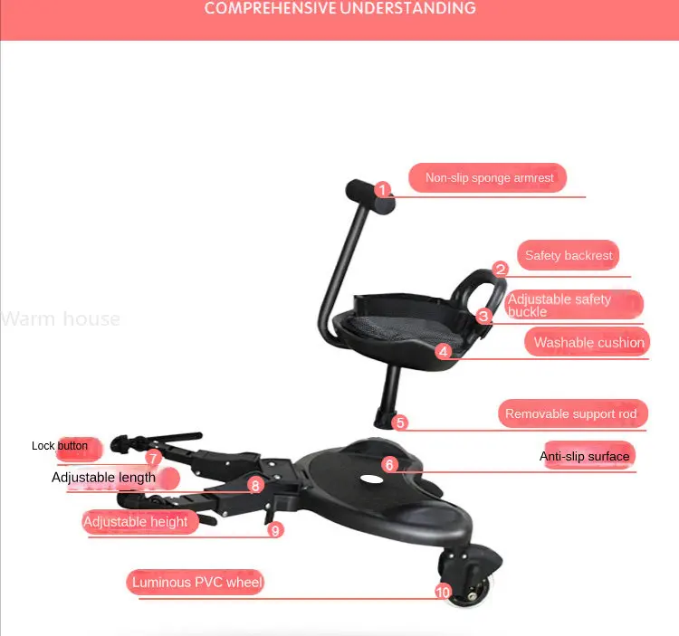 Universal Stroller Pedal Adapter Twins Scooter Hitchhiker Kids Standing Plate with Seat Second Child baby stroller accessories