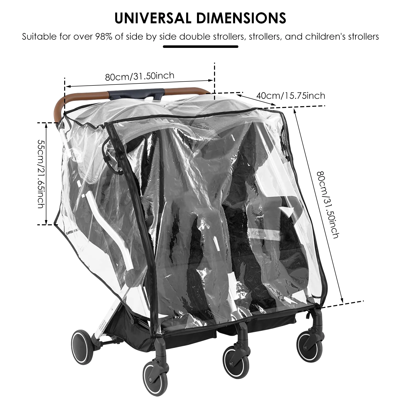 [Sturdy and Durable] This double stroller cover is made of high-quality PVC, has no odor, is sturdy and durable, and can be used for a long time.