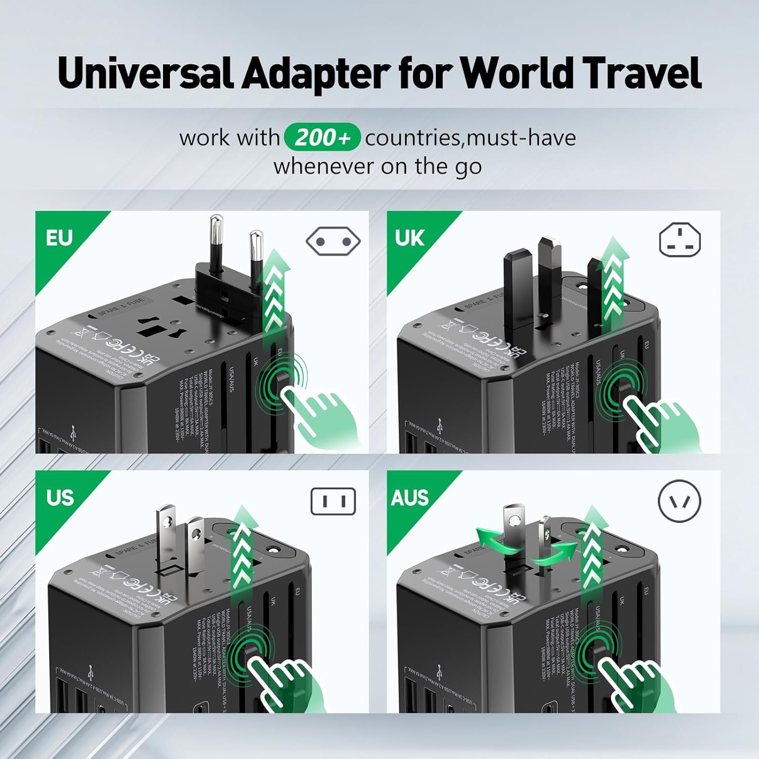 Upgraded Travel Adapter for 200+ Countries