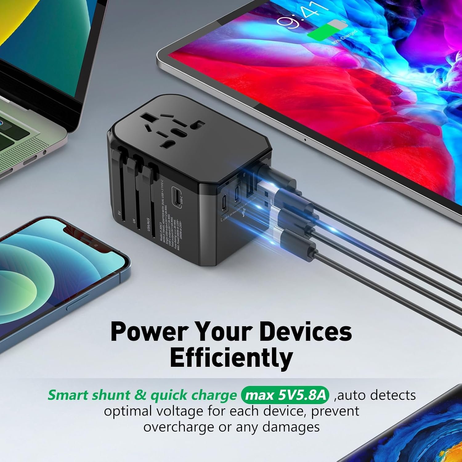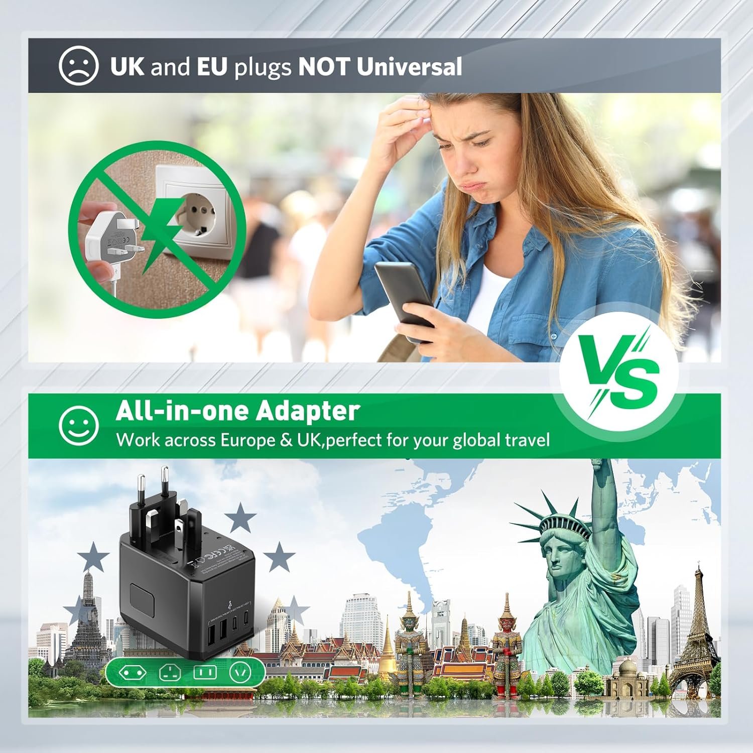 Your cost-effective travel plug adapter, ideal to Share USB Ports with your families or friends!