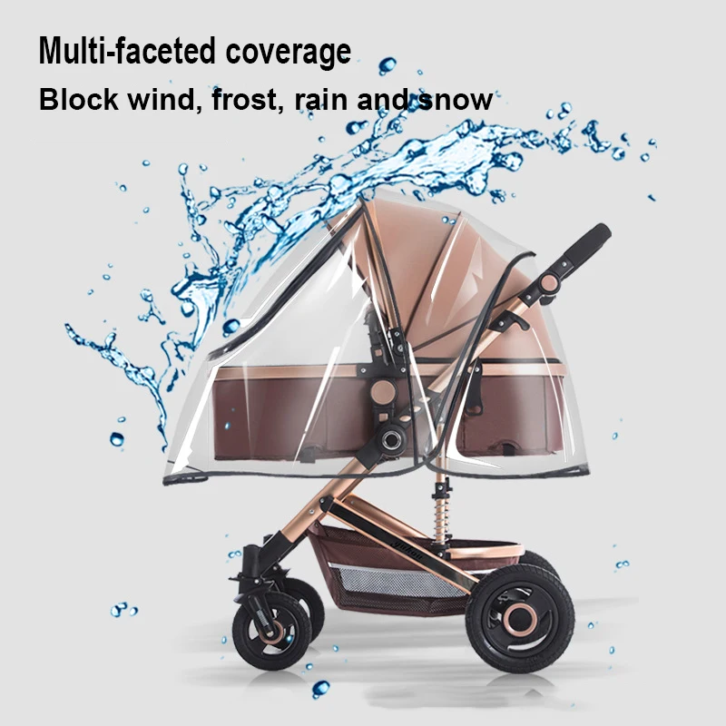 The rain cover of the stroller is made of PVC. It has high transparency and gloss, durability and tear resistance.