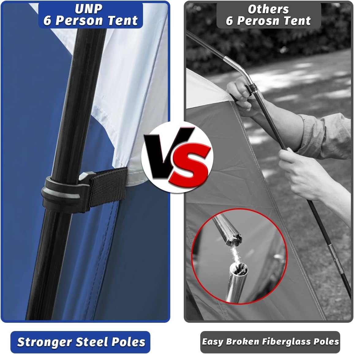 UNP Tents 6 Person Waterproof Windproof Easy Setup,Double Layer Family Camping Tent with 1 Mesh Door & 5 Large Mesh Windows -10’X9’X78in(H)