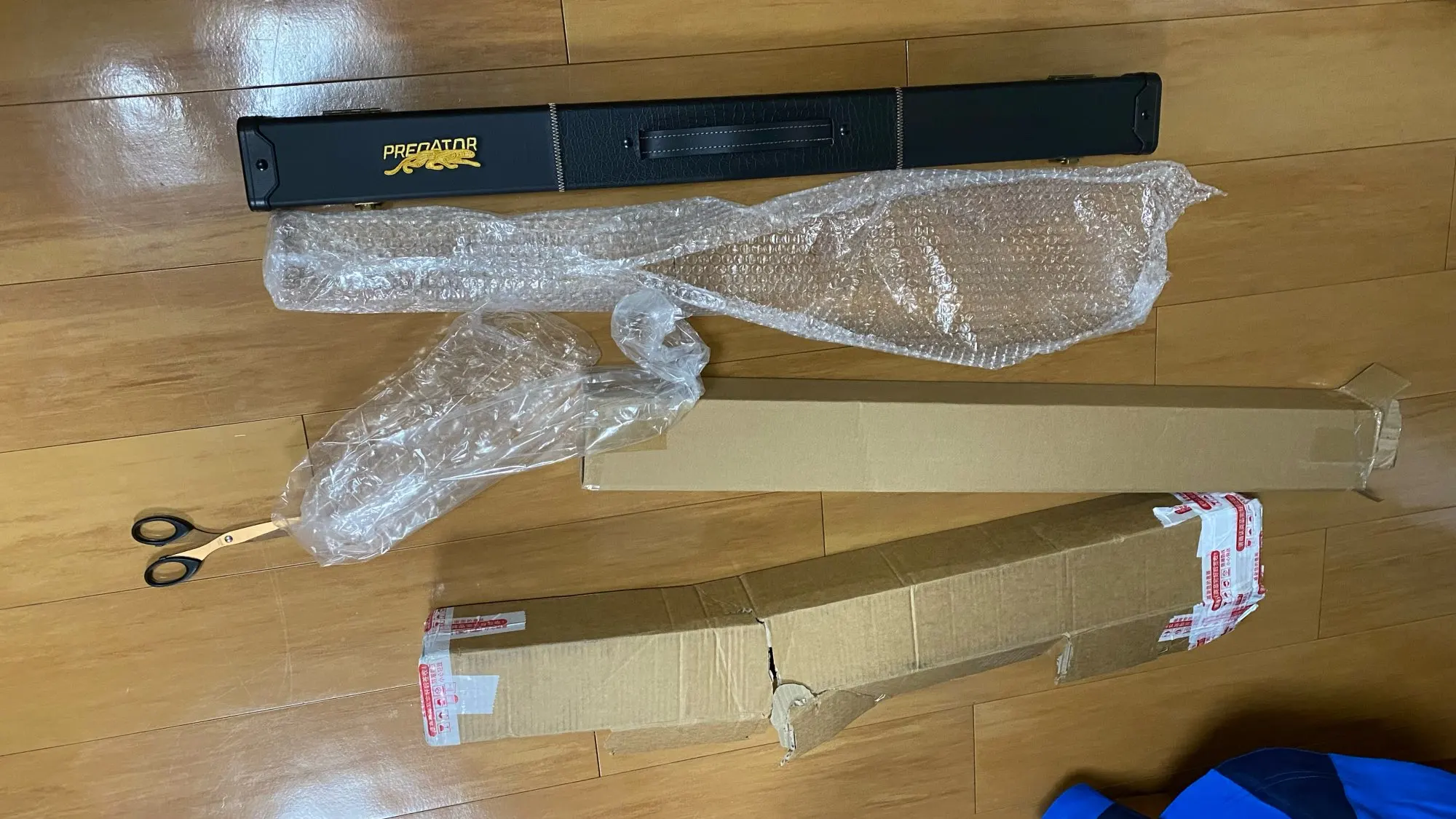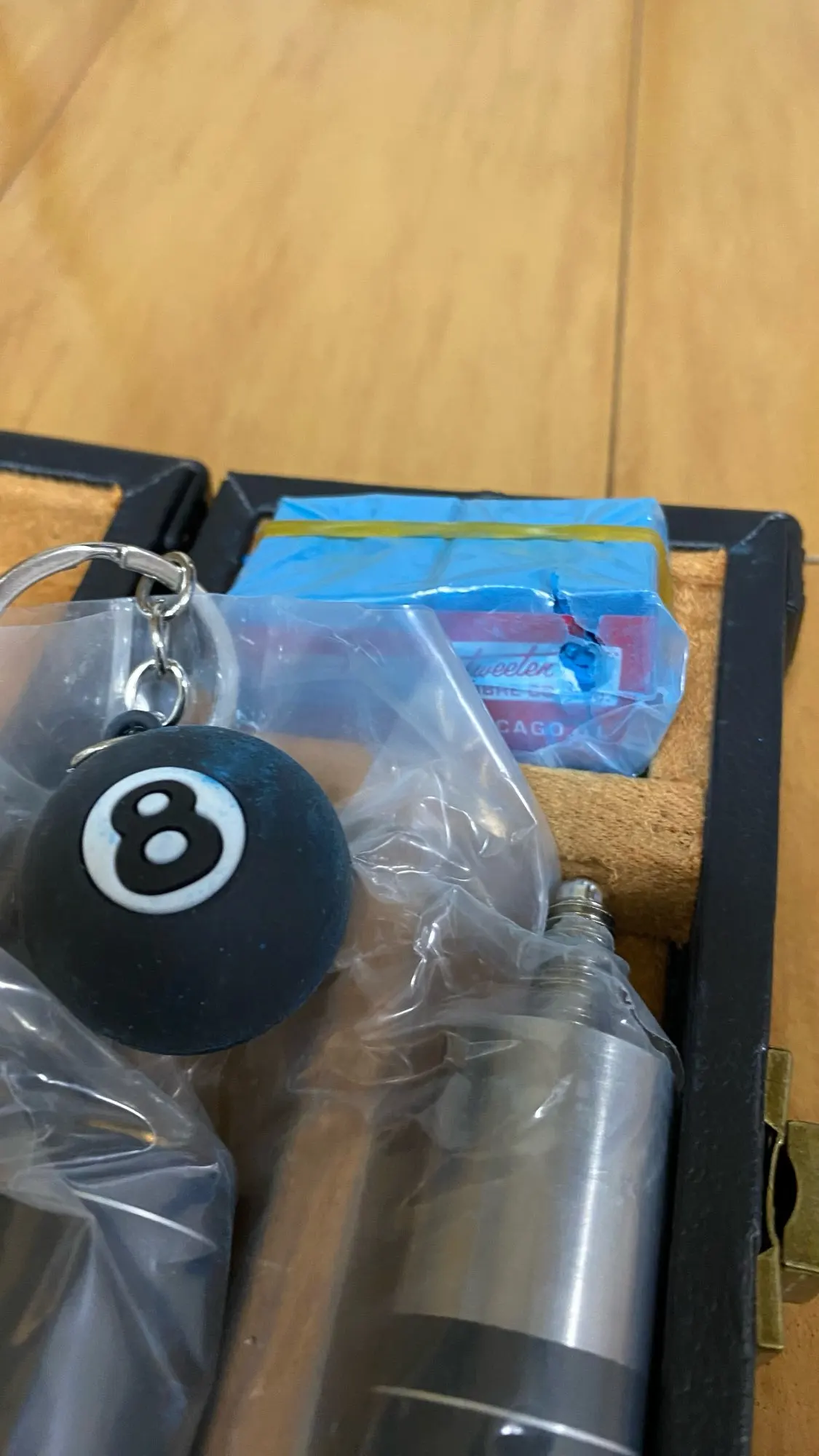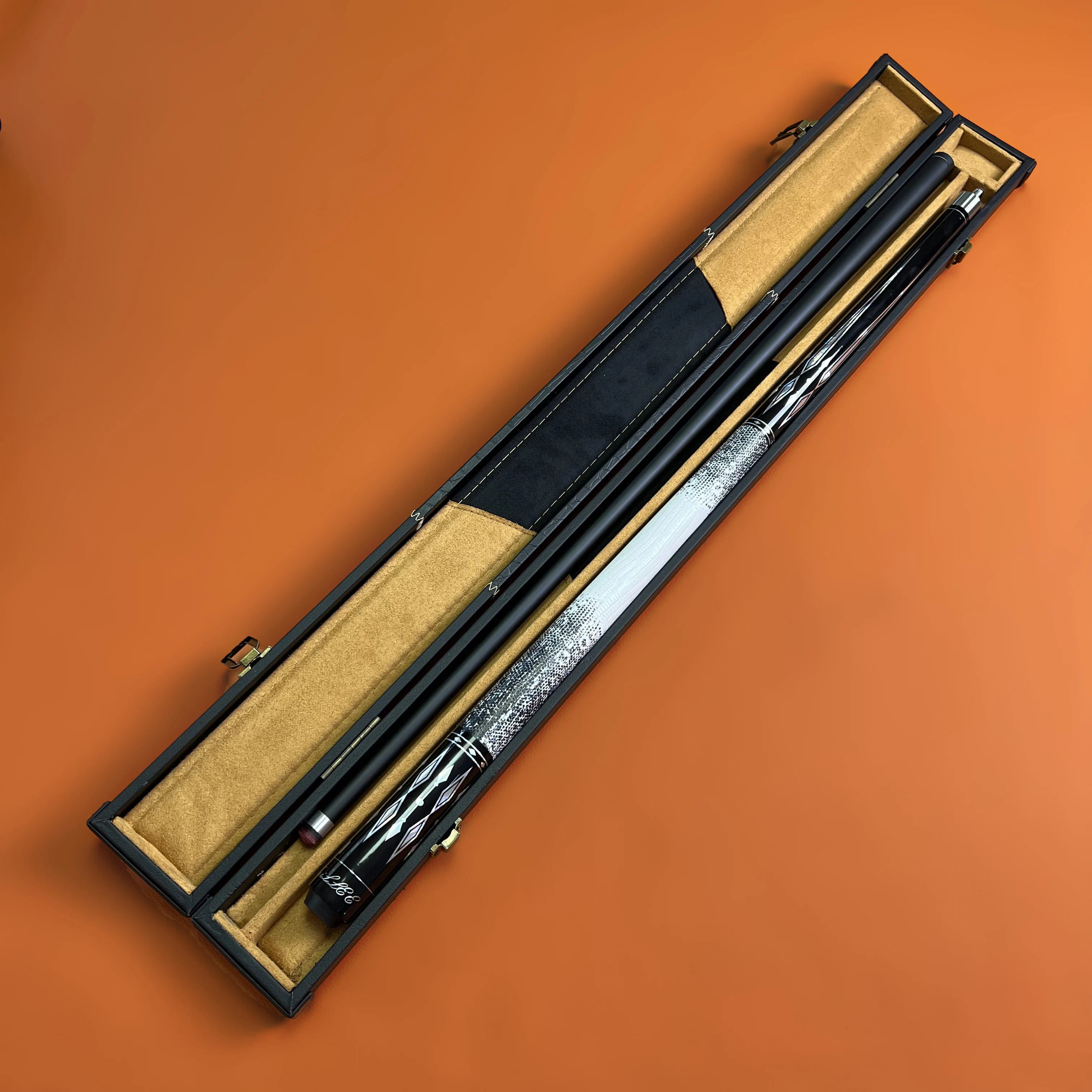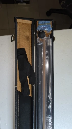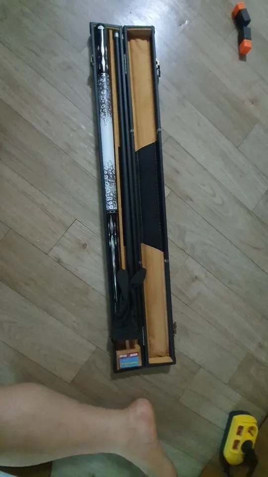 It arrived quickly, the top part of the cue is matte black and the other part is glossy black. It could be all glossy black. The chalk came damaged, I believe during transportation. The case is made of wood covered with fabric, seems to be sturdy. In summary, the price is compatible with the value. If it’s for an amateur player, it serves perfectly.