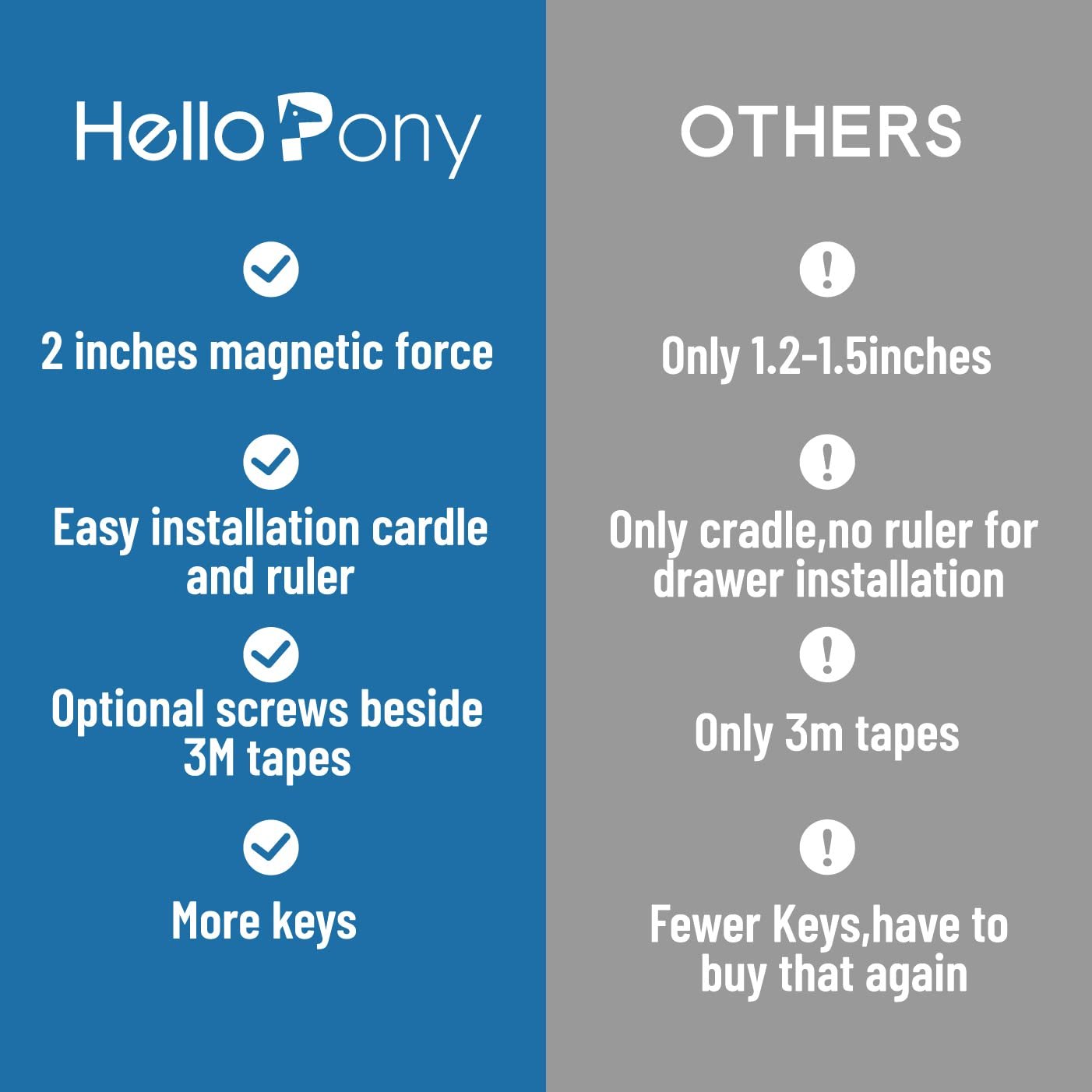 ✔Reach to 2-inches-thick cabinet door: Unlike some locks are suitable only for 1.2 – 1.5inch cabinet doors, we have increased the magnetic strength of the lock to extend a full 2 inches so that it can accommodate a greater variety of cabinet designs.
