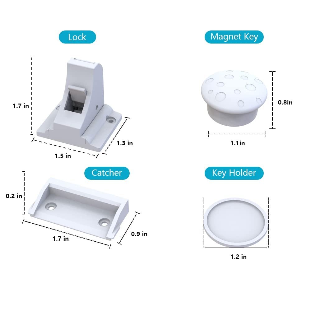 Customers find the magnetic cabinet locks easy to install, with one completing the kitchen setup in 30 minutes, and appreciate their functionality, with one noting they work well on thicker bathroom cabinet doors. The locks effectively keep children out of cabinets, and customers consider them good value for money. The adhesive strength and lock functionality receive mixed reviews – while some find the adhesive good, others say it’s not strong enough, and while some praise the locks, others report they don’t work at all. The build quality is criticized for being of poor quality.