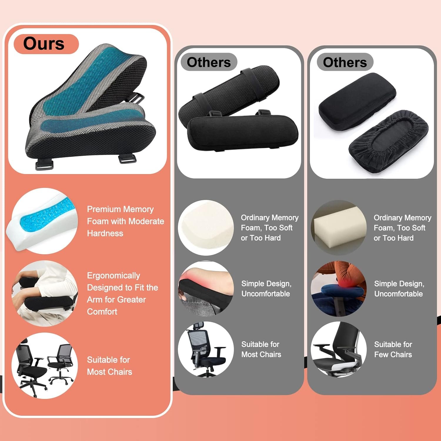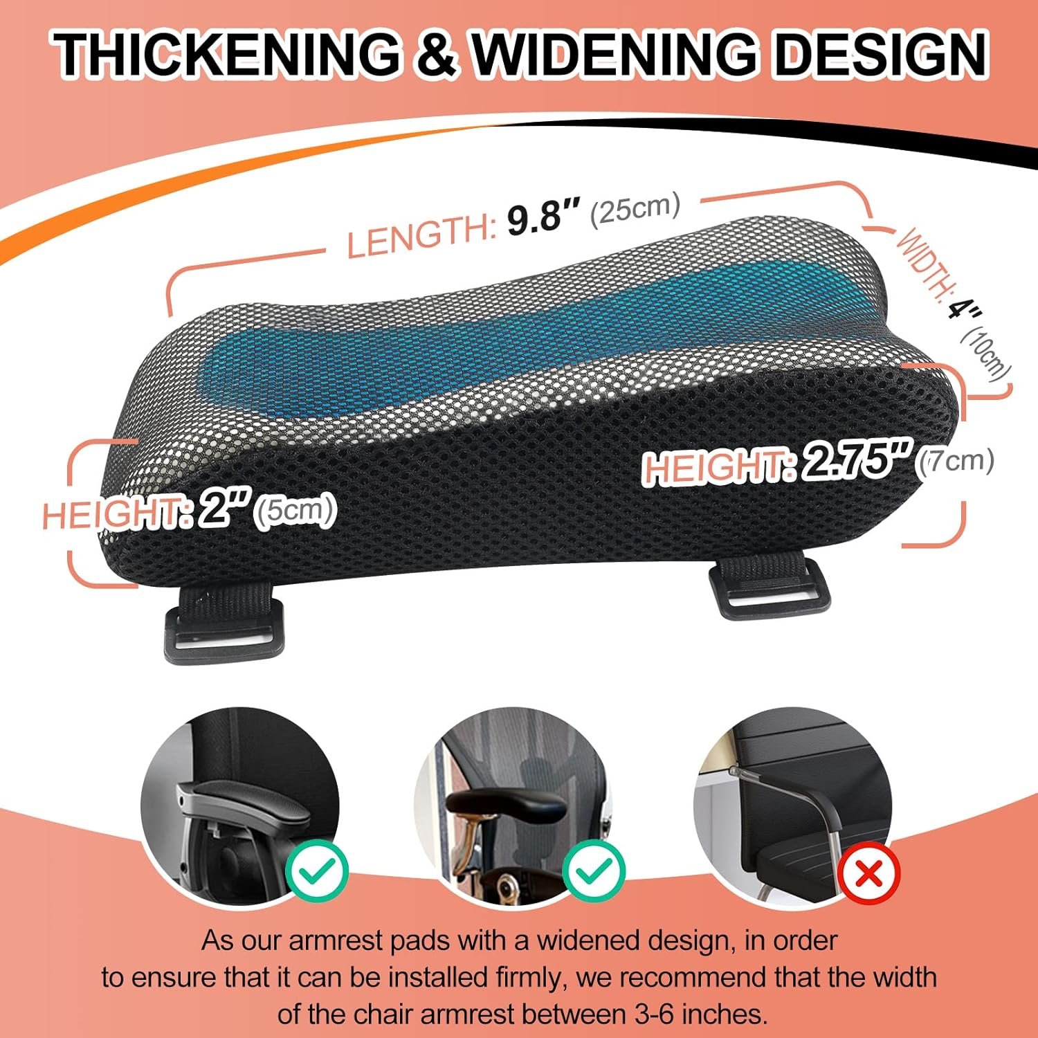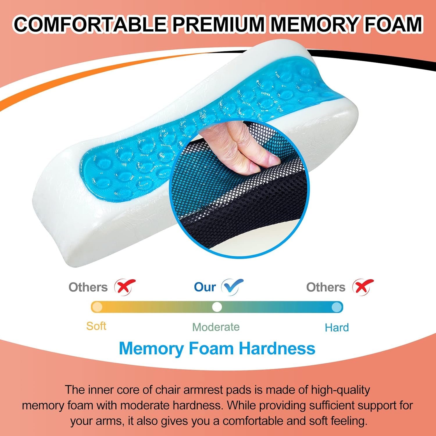 Upgraded Office Chair Arm Pads with Cooling Gel, Ergonomic Memory Foam Armrest Pads for Office Chair Gaming Chair Arm Rest Covers for Desk Chair Armrest Cushions (Set of 2)