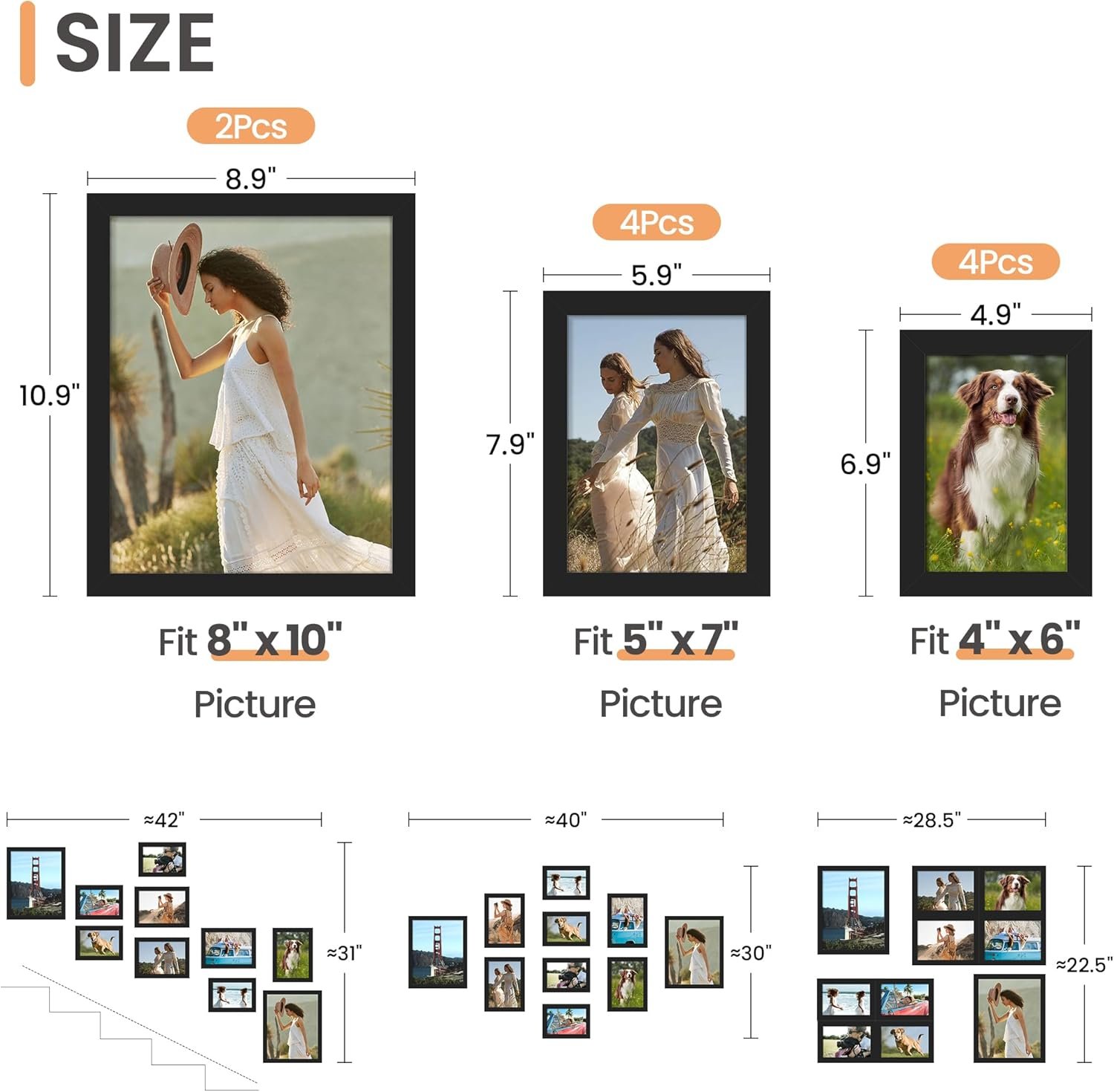 upsimples 10 Pack Picture Frames Collage Wall Decor for Mounting or Tabletop Display, Photo Gallery Frame Set for Family, Multi Sizes Including 8×10, 5×7, 4×6, Black