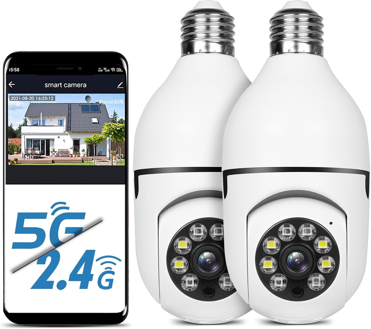 UPULTRA Light Bulb Security Camera Outdoor 2packs HD Wireless 5GHz/2.4GHz WiFi Home IP Cameras E27 360 Degree Panoramic,Motion Detection and Alarm,Two-Way Audio,Night Vision
