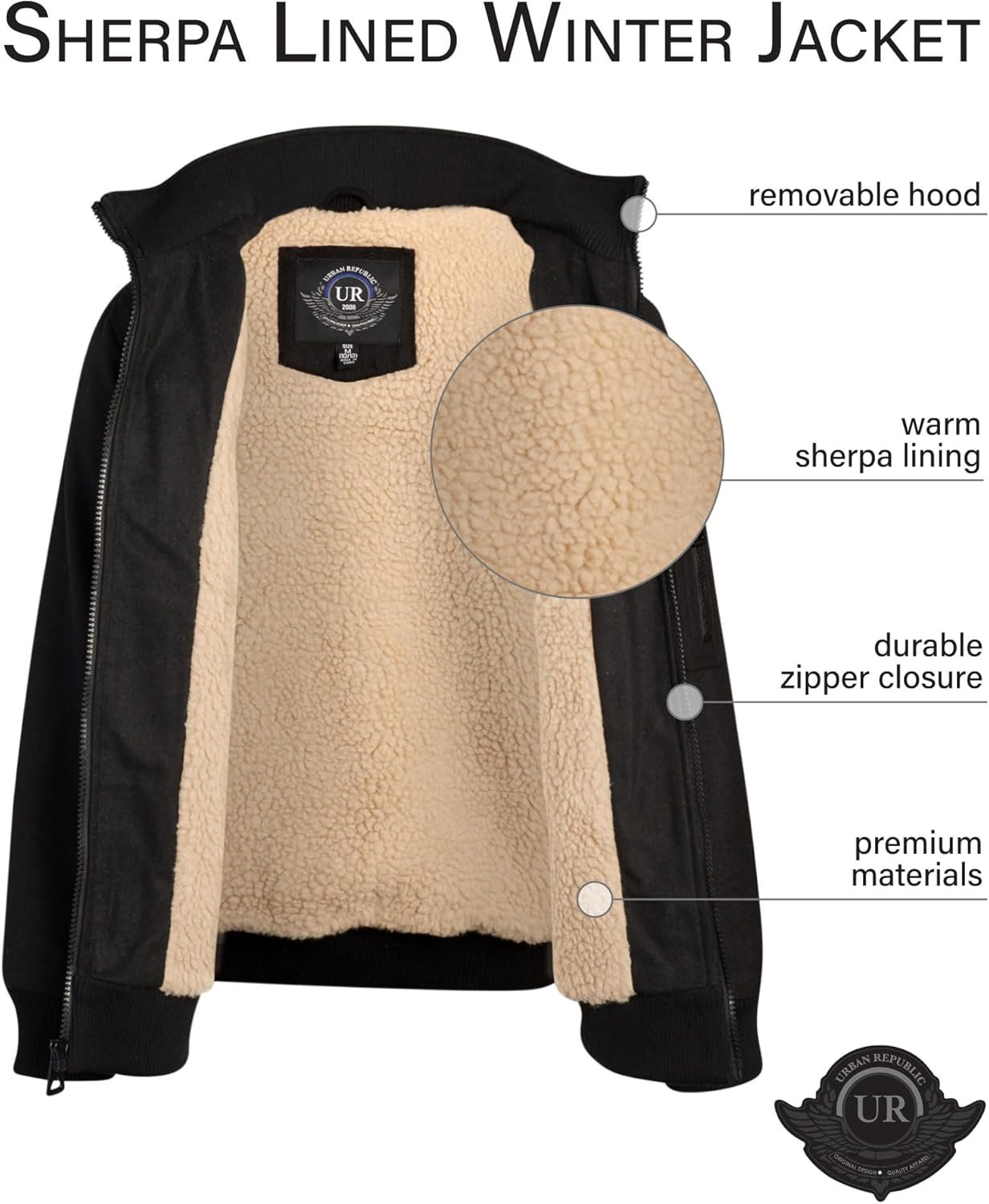 URBAN REPUBLIC Boys’ Winter Jacket – Warm Sherpa Lined Snowboarding Winter Outerwear Coat with Detachable Hood (Sizes: 8-20)