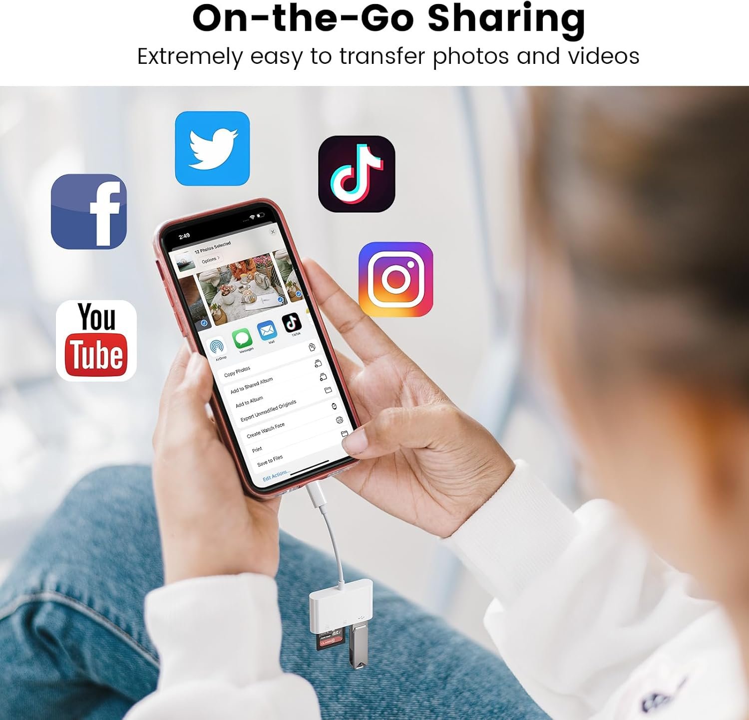 Safe and Reliable for Everyday Use: The iphone sd card reader is equipped with built-in short circuit and overcurrent protection, ensuring data transmission safety. Its compact and sturdy design makes it portable and suitable for various environments. Whether you are at home or on the go, you can use this sd card reader for android with confidence, ready to meet your data needs at any time.
