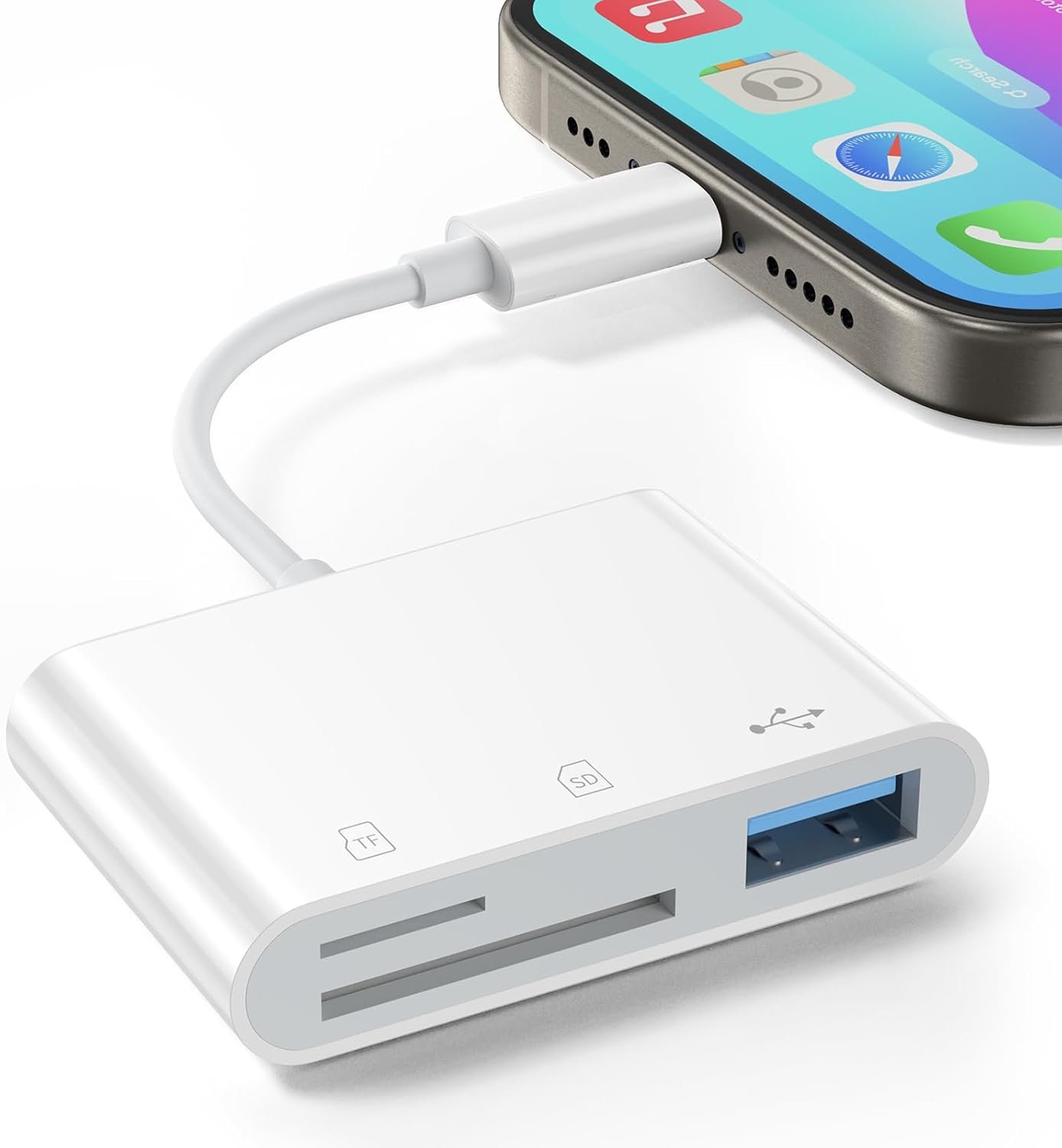 USB Camera Adapter, High-Speed SD Card Reader for iPhone 15/16, Portable iPhone Adapter with SD MicroSD USB Port for Android Phones, Tablets, and More Devices